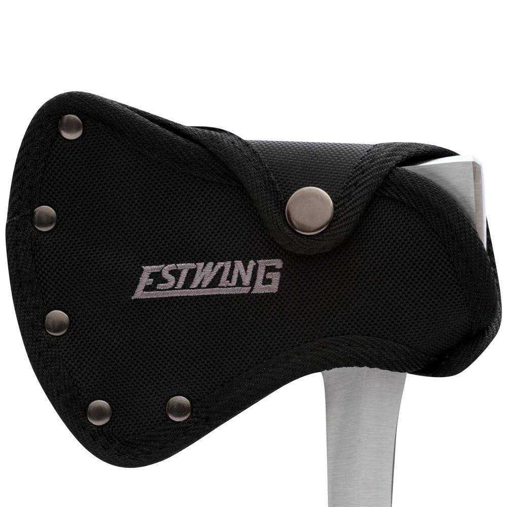 Estwing E14A 12″ Sportsman’s Axe With Leather Grip Head and handle forged in one pieceFully polished with genuine leather grip and sheathAll steel construction2-3/4″ cut edge12″ L14 ozEstwing’s world famous 14 oz. sportsman’s axe is the choice of outdoorsmen everywhere. Both the head and handle of the axe are forged in one piece and are fully polished. This classic axe offers unsurpassed balance and temper. It has a genuine leather grip that is sanded and lacquered for a beautiful finish. This axe also comes with an attractive genuine leather sheath. It has a tempered thin 2-3/4″ cutting edge for easy cutting. A must for all campers and outdoorsman alike! Made in the USA. Protect your eyes from flying particles and dust. Always wear safety goggles. Bystanders shall also wear safety goggles.