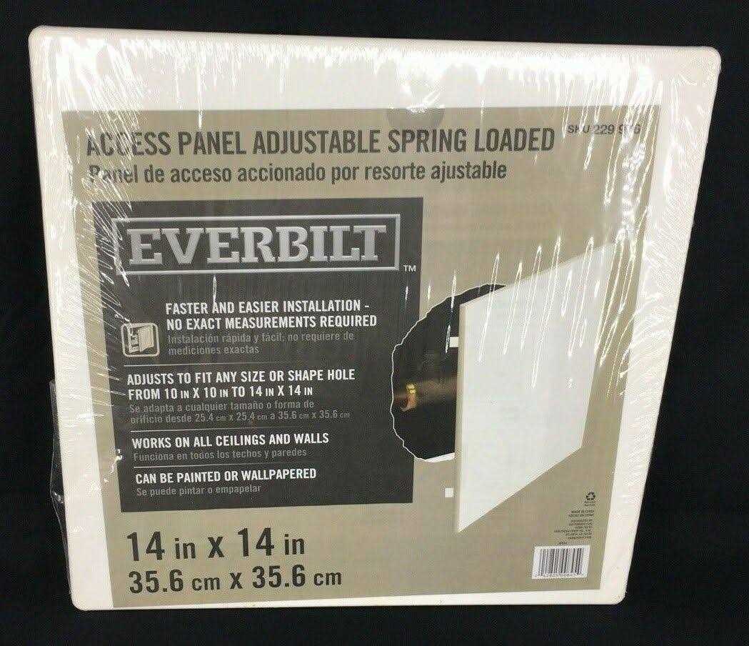 Keep unsightly connectors hidden with this spring fit access panel. Safely stow plumbing, spa pumps, wires and cables for residential and commercial applications. Constructed with durable white polystyrene, you can paint or wallpaper this panel to match the surrounding decor. Easy to paint or wallpaper to match your decor Can be installed by a DIYer or contractor Designed to hide wires, plumbing cables and spa pumps Fits any size or shape hole from 10 in. x 10 in. to 14 in. x 14 in. No exact measurements required Works on ceilings and walls Can be painted or wallpapered Hides plumbing, spa pumps, wires and cables Easy to install Conceal plumbing, wires, cables or spa pumps in residential and commercial applications by using Everbilt Spring Loaded Plastic Access Panel.
