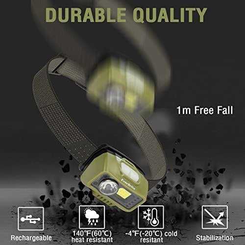 Everbrite Rechargeable HEADLAMP, LED Bright Motion Sensor Head Lamp Flashlight with 9 Modes, Adjustable Headlight for Adults, Green