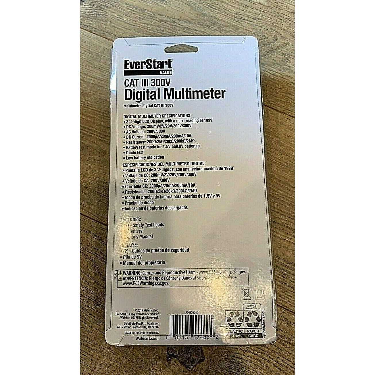 Everstart Automotive 300 Volt Digital LCD Multimeter 10711WDI