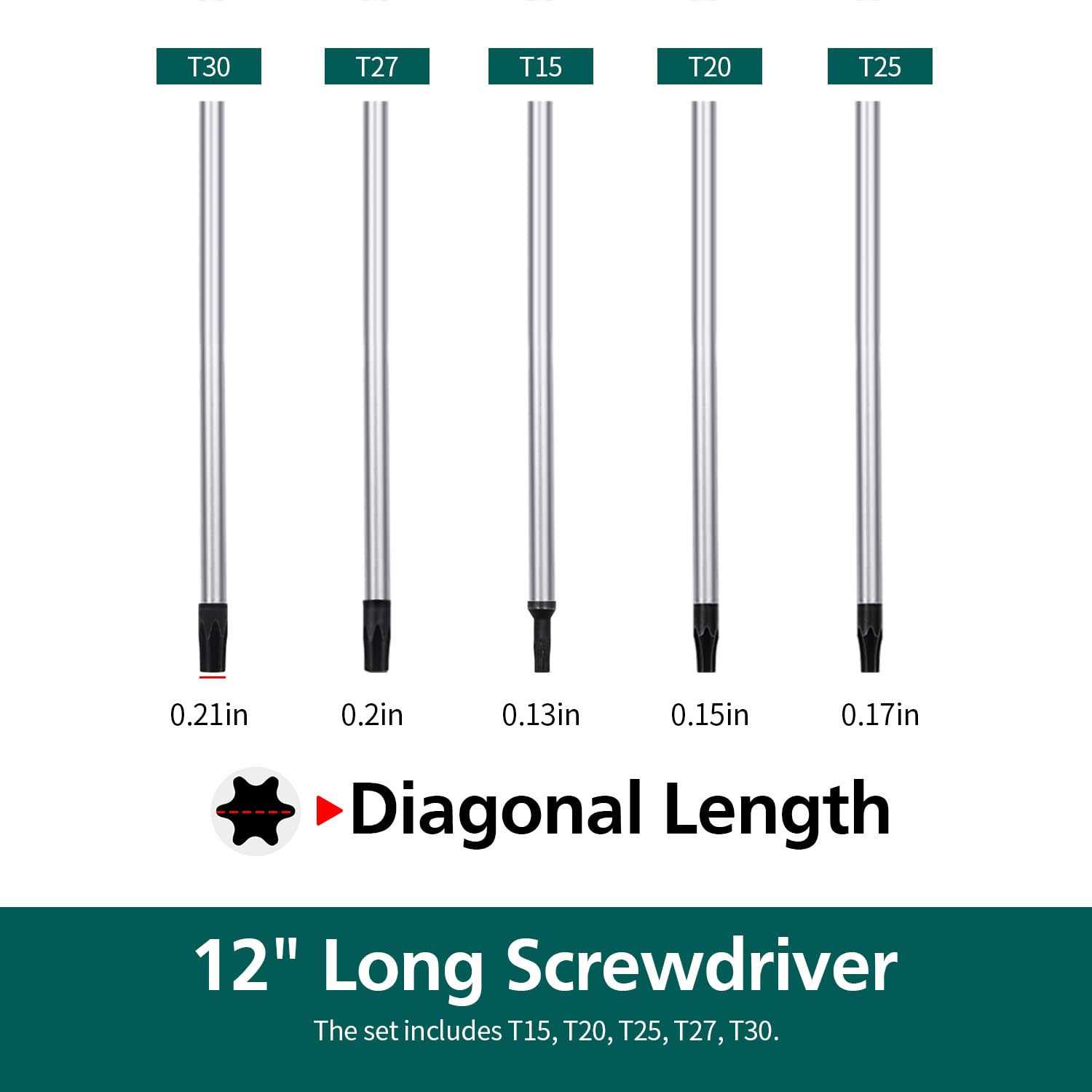 Extra Long Torx Screwdrivers Set, 5pcs 12in Magnetic Torx Screwdrivers Set, T15 – T30 (T15,T20,T25,T27,T30) Magnetic Torx Driver Star Screwdrivers