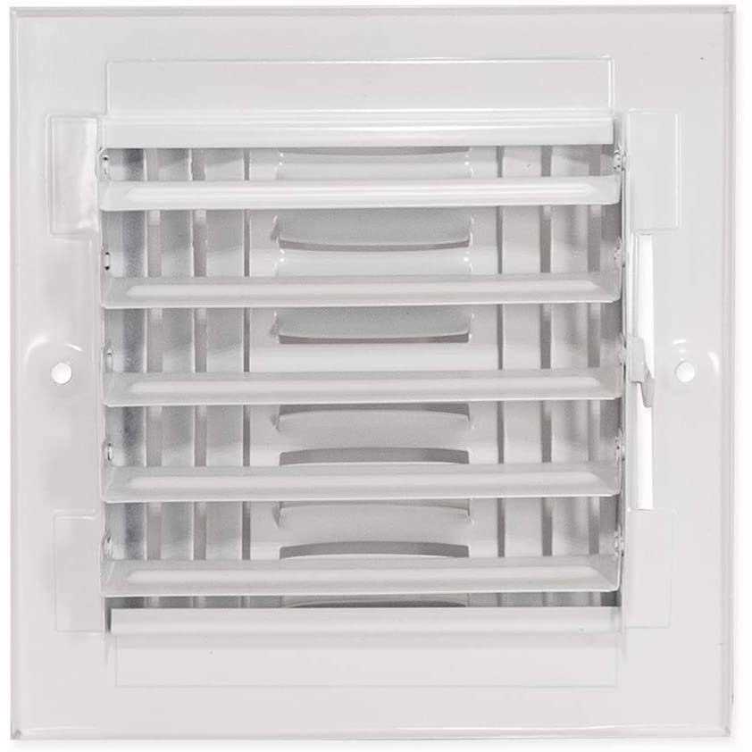 The EZ-Flo Wall/Ceiling Register is designed for wall or ceiling openings to control airflow for increased comfort. This register ensures quiet airflow from your central air system. It is made of heavy-duty steel with a white powder-coated finish that resists flaking and rust for a longer-lasting performance. It fits a rough duct opening 8 inches wide by 8 inches long. It features 4-way air deflection and five adjustable dampers for easy airflow adjustments. Includes (2) screws for easy installation. It is important to check the duct opening size before purchasing a duct or vent cover.