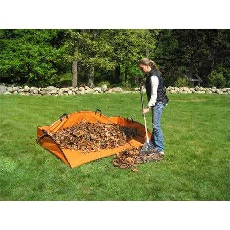 The EZ Leaf Hauler makes any size yard clean-up a breeze. Simple and lightweight, the EZ Leaf Hauler is designed specifically to make moving large piles of leaves and brush easier and faster, allowing you to get to get back to your favorite fall activities. It measures 7-by 5-feet and provides up to 35 sq. ft. of surface area to work with. Constructed out of rugged woven tarp material for extra durability, it holds 5 times more than a wheelbarrow and requires no lifting. Just rake in debris and haul away. Cheaper and quieter than a blower, it requires no gas or maintenance. With 3 sturdy sides, ground stakes to hold it in place and 6 built-in handles, the EZ Leaf Hauler works like a giant dustpan and is great for any season clean small or large. Simply fold and store compactly out of the way when not in use. Includes 3 collapsible fiberglass tent rods for basic assembly and ground-stakes already attached. High quality, maintenance-free materials ensure years of hassle-free use and enjoyment.