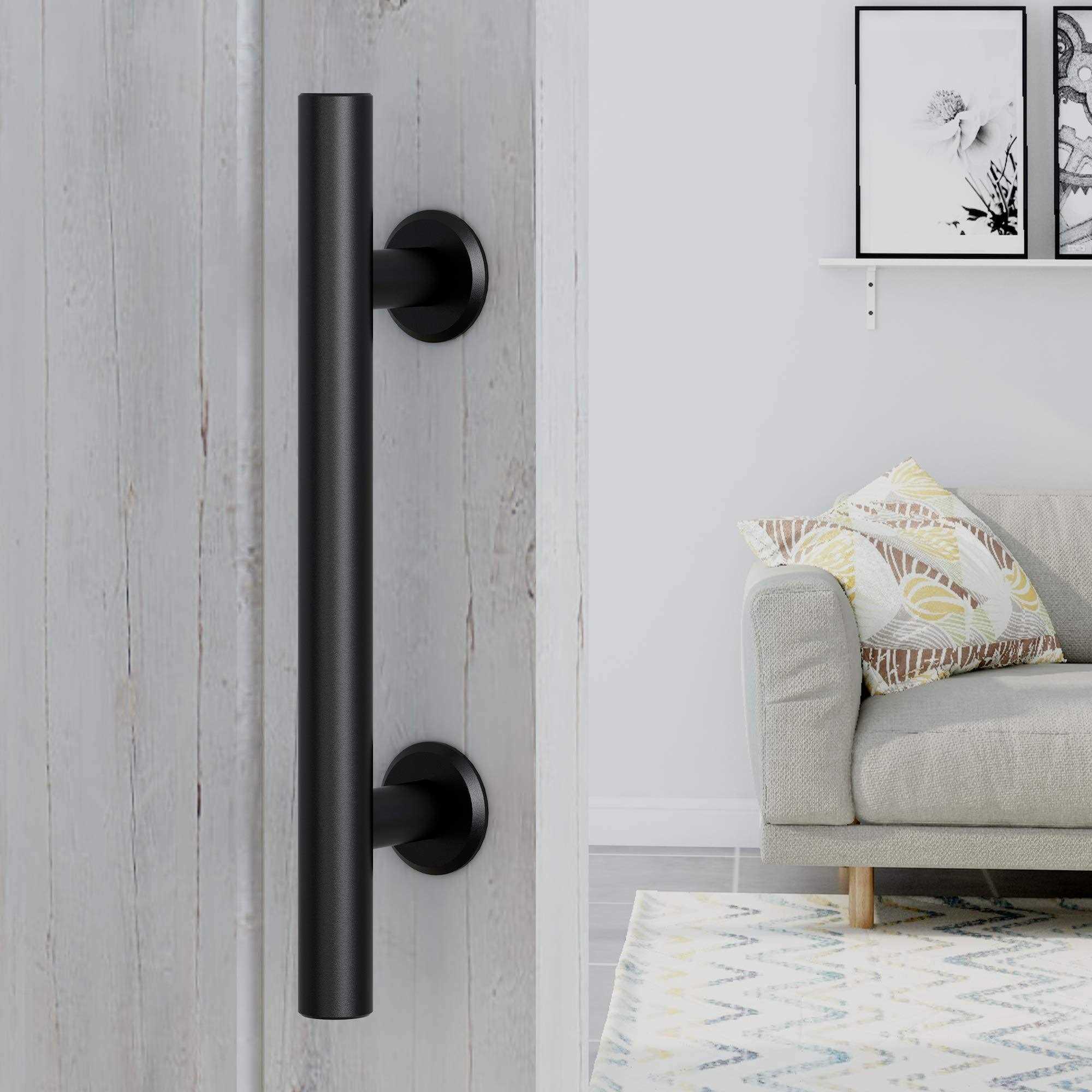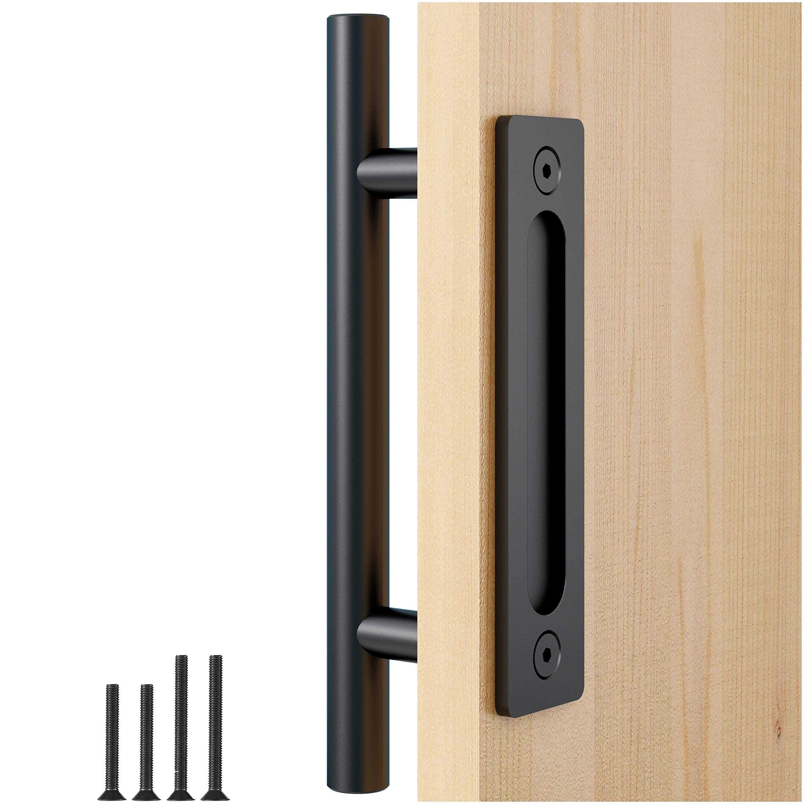 FaithLand 12in Heavy Duty Pull and Flush Door Handle Set in Black Sliding Barn