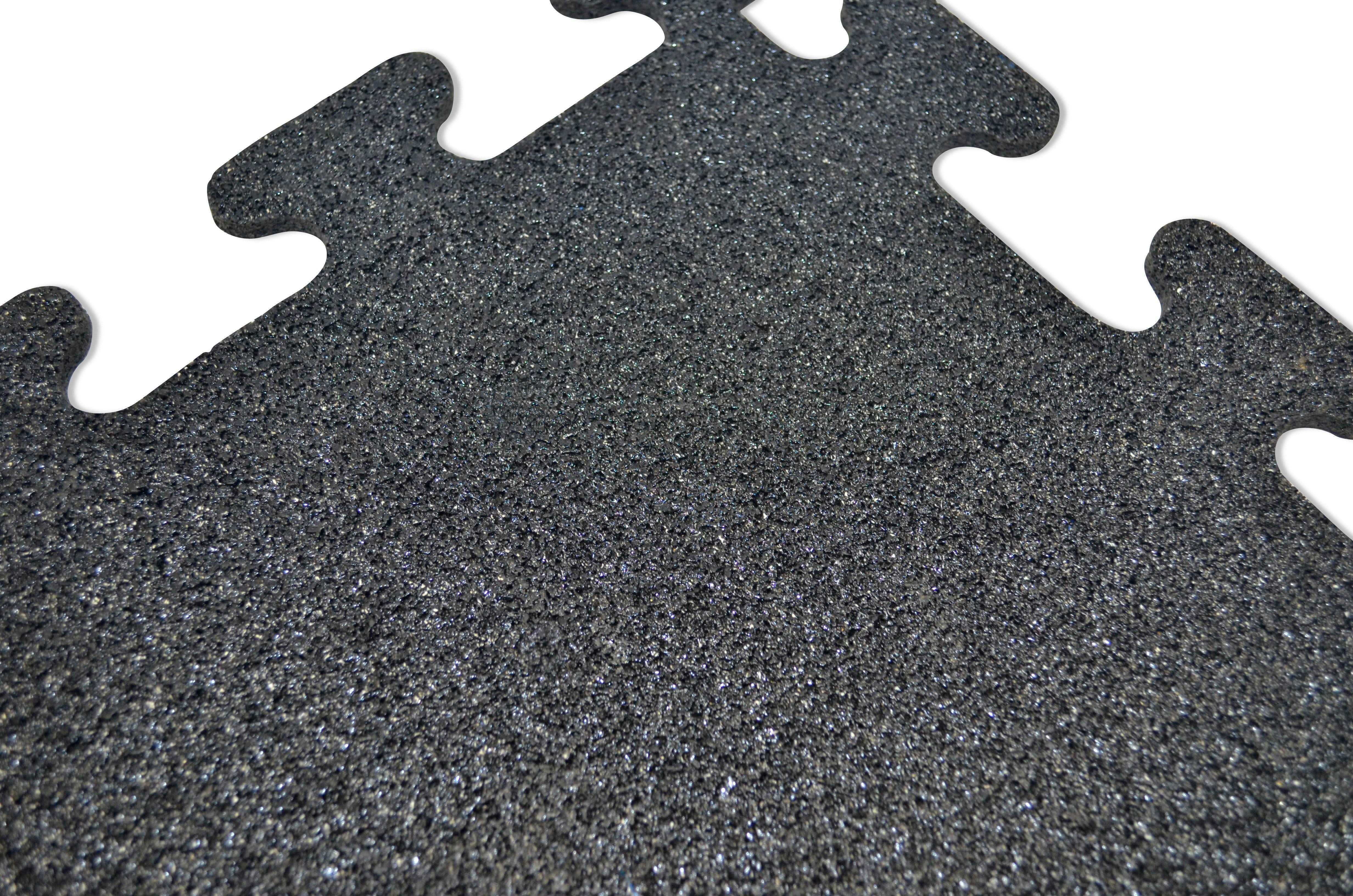 This Titan 18 x 18 inch Black Rubber Tile Flooring features a skid-resistant composition and is shock-absorbent which reduces fatigue and provides greater comfort. This flooring offers rigid strength for durability and is ideal for gyms or exercise rooms. You can easily install the mat flooring yourself to fit any room layout. The mat is composed of 99% recycled content for an Earth-conscious flooring choice.