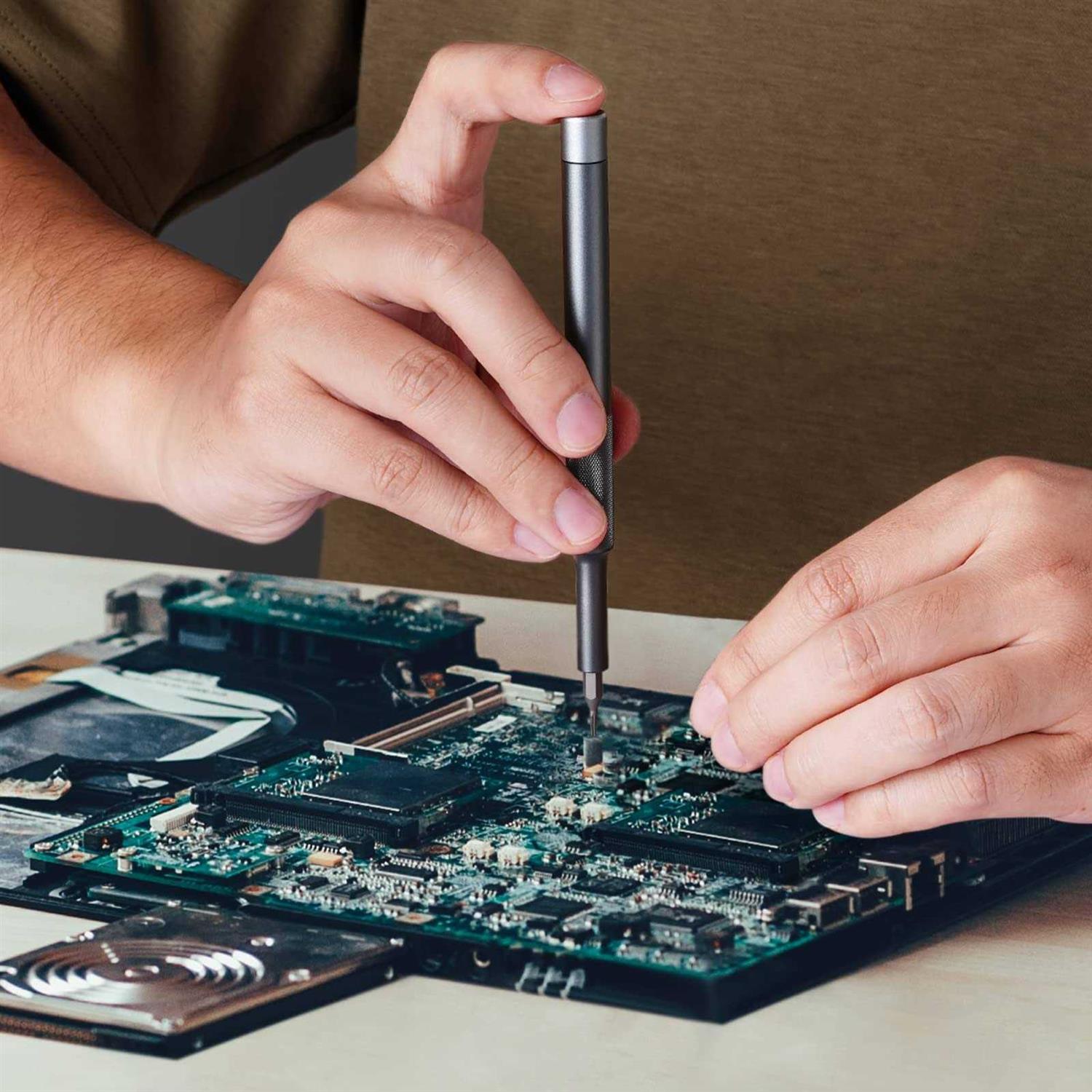 Fanttik X5 Precision Screwdriver Set is the ultimate solution for all your precision work. Discover a Super Versatile Bits Selection, featuring 24*S2 steel magnetic precision bit heads in a total of 10 mainstream types. From quartz watches to cameras, radios to tablet computers, mobile phones to drones, this electric screwdriver set has you covered for various daily uses. The all-in-one design simplifies disassembly and maintenance of a wide range of equipment. Experience Durability and Precision with every driver bit crafted from high-quality S2 steel. With a hardness up to 60HRC, S2 bits outlast those made of chrome-vanadium steel (CR-V), ensuring long-lasting performance. Embrace the Rotatable Non-Slip Handle – the aluminium alloy handle of this mini battery screwdriver features a knurled non-slip treatment for a comfortable grip. The 360° rotating cap prevents hand fatigue during extended work. The sandblasted surface anodes treatment provides anti-sweat and anti-corrosion properties. Benefit from the Magnetic Storage Box with an ejection button for easy access to bits. The magnetic box keeps all screws securely in place, preventing them from falling off. The built-in strong magnet on the screwdriver shaft head simplifies bit installation and effortlessly holds small screws. Elevate your precision work with the Fanttik X5 Mini Electric Screwdriver Kit. Order now and enjoy versatile, durable, and precise performance in all your tasks.