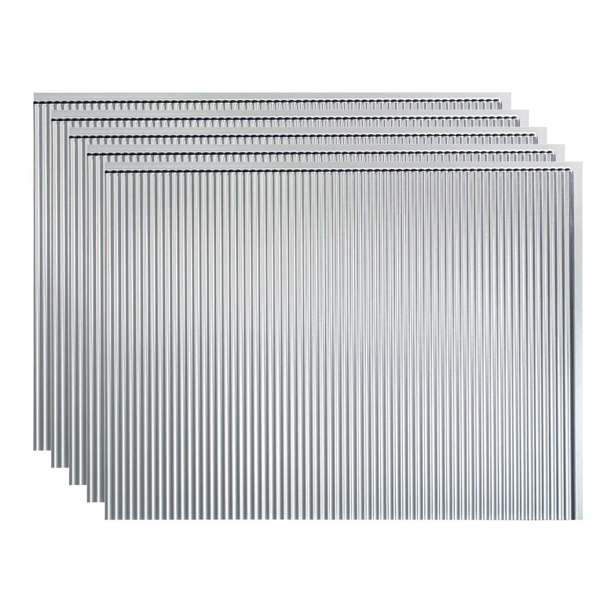 Fasade 18in x 24in Rib Brushed Aluminum Backsplash Panel (5 Pack)