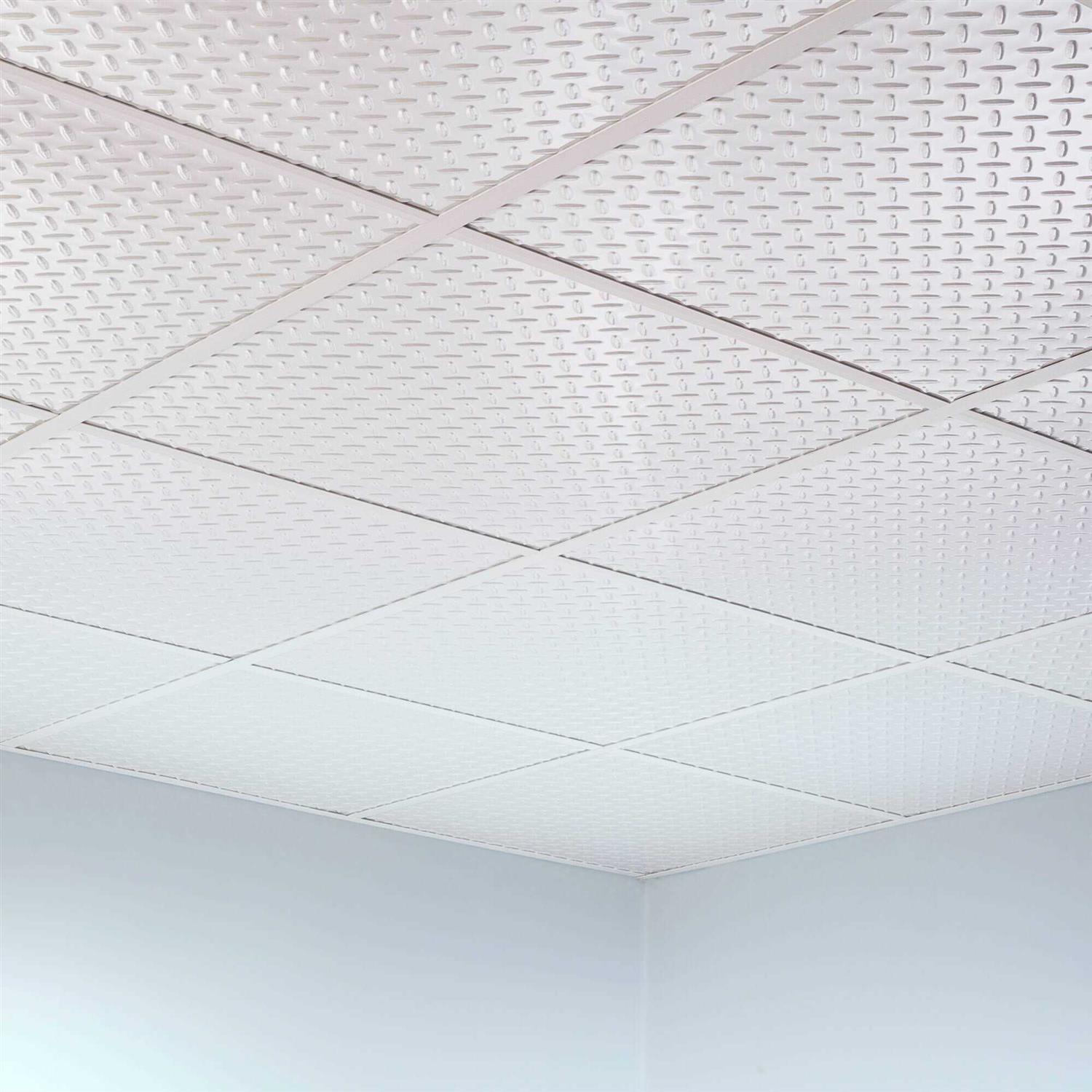 Fasade Diamond Plate Decorative Vinyl 2ft x 2ft Lay in Ceiling Tile in Gloss White (5 Pack)