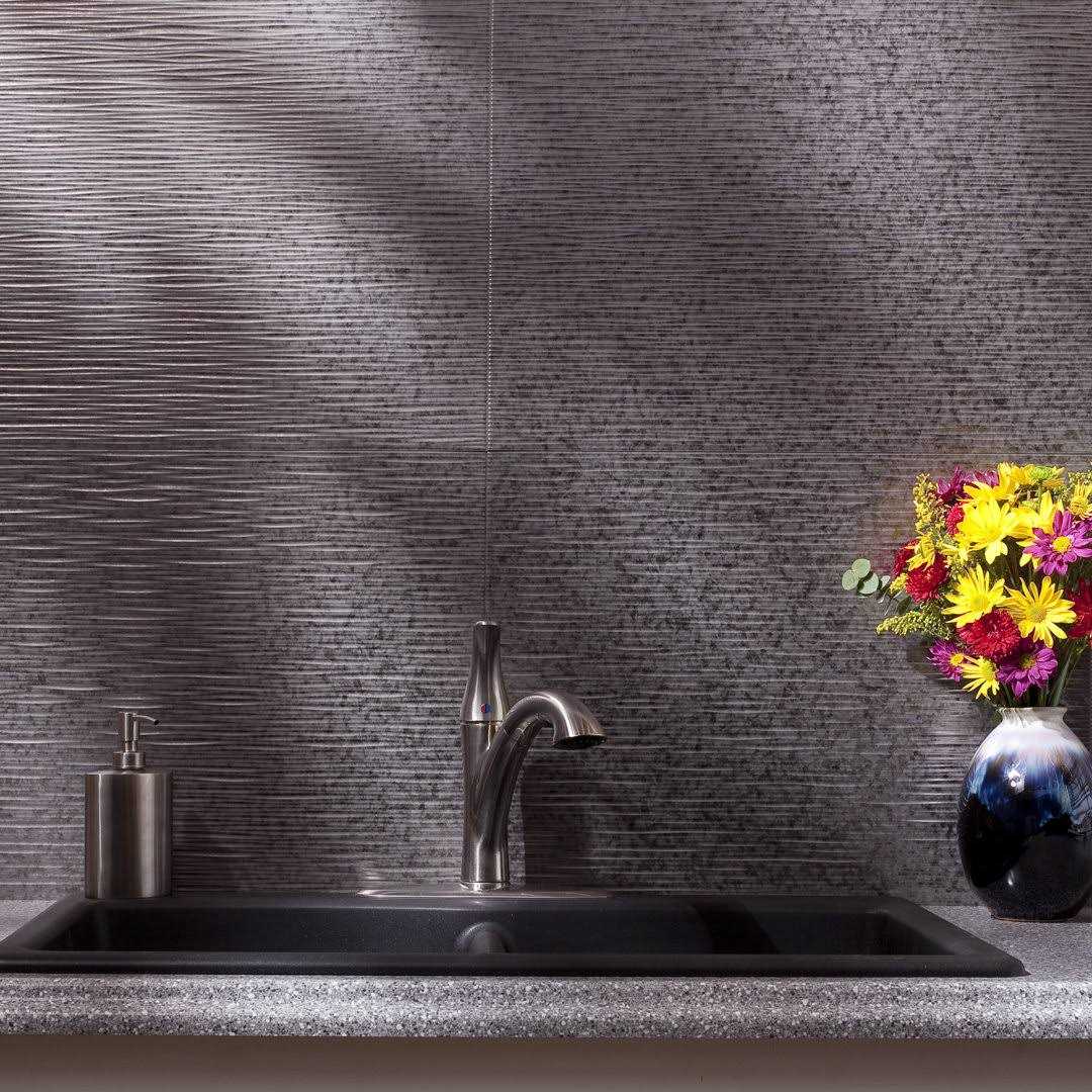 Fasade 18in x 24in Ripple Galvanized Steel Backsplash Panel (5 Pack)