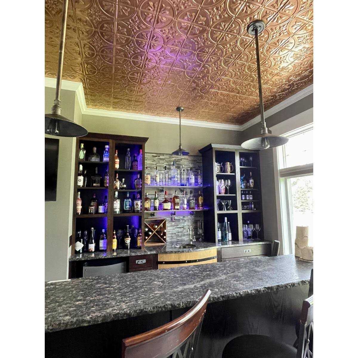 Fasade Glue-up decorative thermoplastic ceiling panels provides the classic look of Traditional tin ceilings for a fraction of the cost. Whether you are remodeling an entire room or simply accenting a small area, these ceiling panels create an instant designer look. Unlike Traditional tin panels that require decades to acquire an antique look, these ceiling panels have that turn of the century authenticity right out of the box. Fire Rating – Class A.