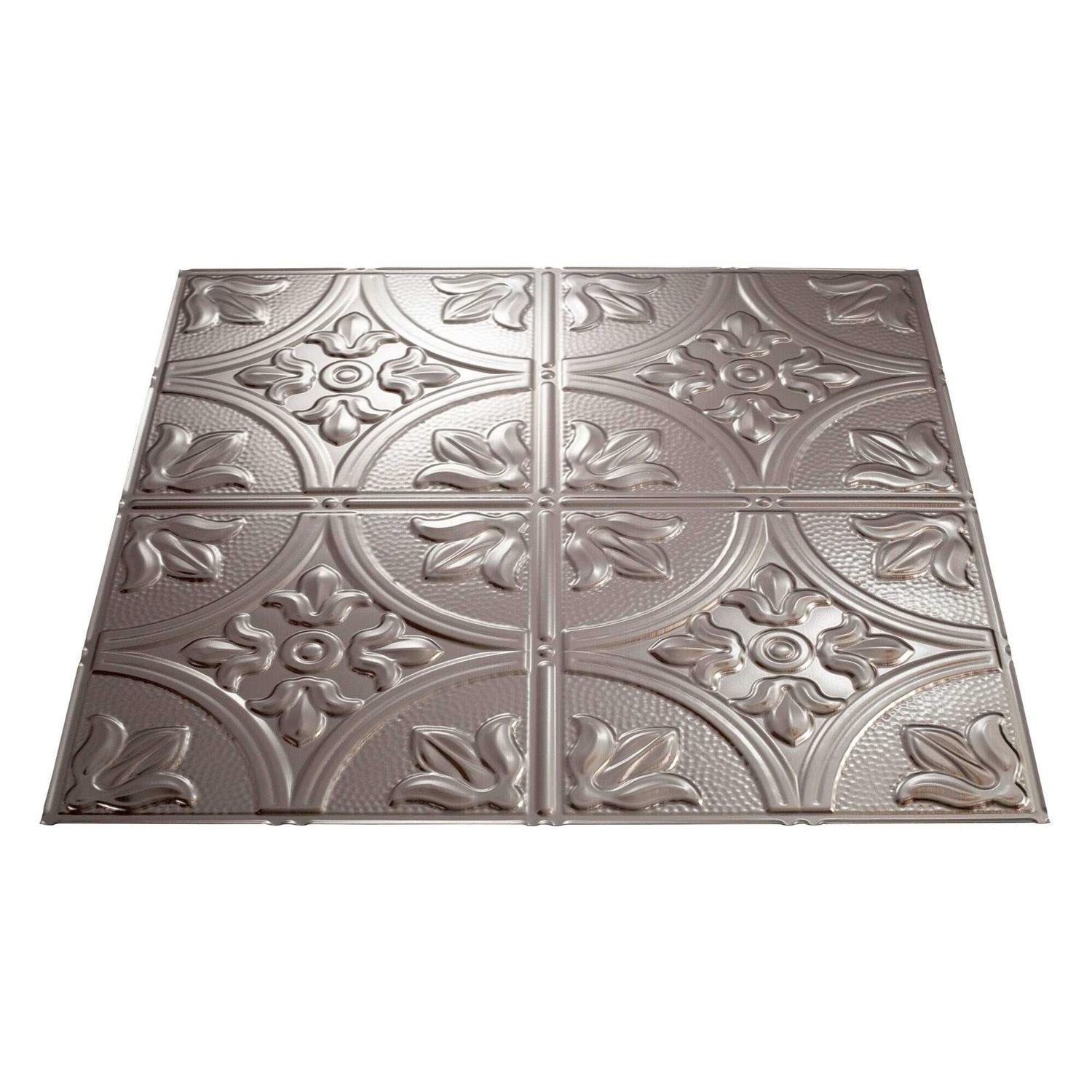 Fasade Traditional Style/Pattern 2 Decorative Vinyl 2ft x 2ft Lay in Ceiling Tile in Brushed Nickel (5 Pack)