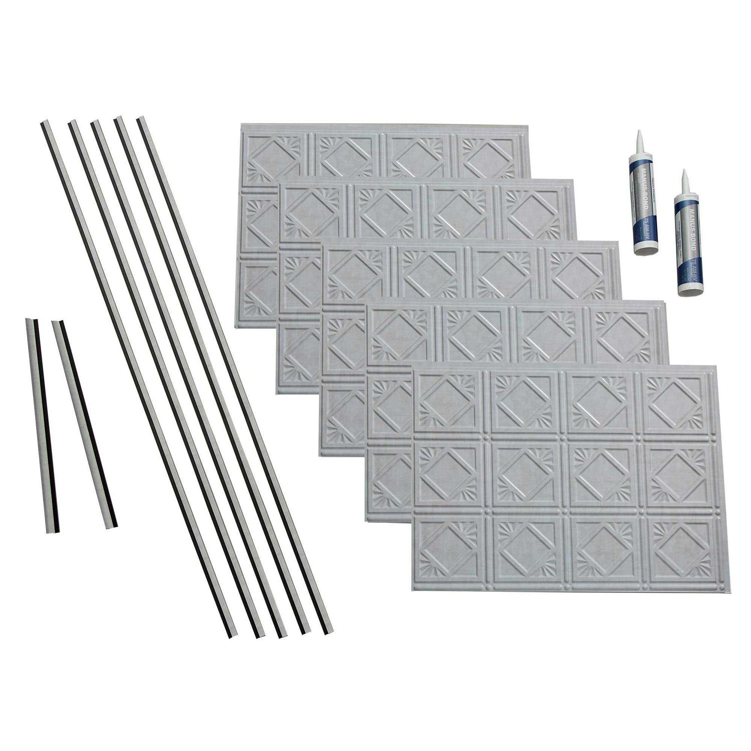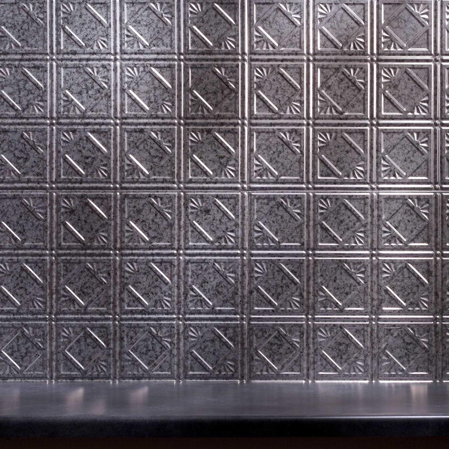Fasade Traditional Style/Pattern 4 Decorative Vinyl 18in x 24in Backsplash Panel – 5 Pack – Galvanized Steel