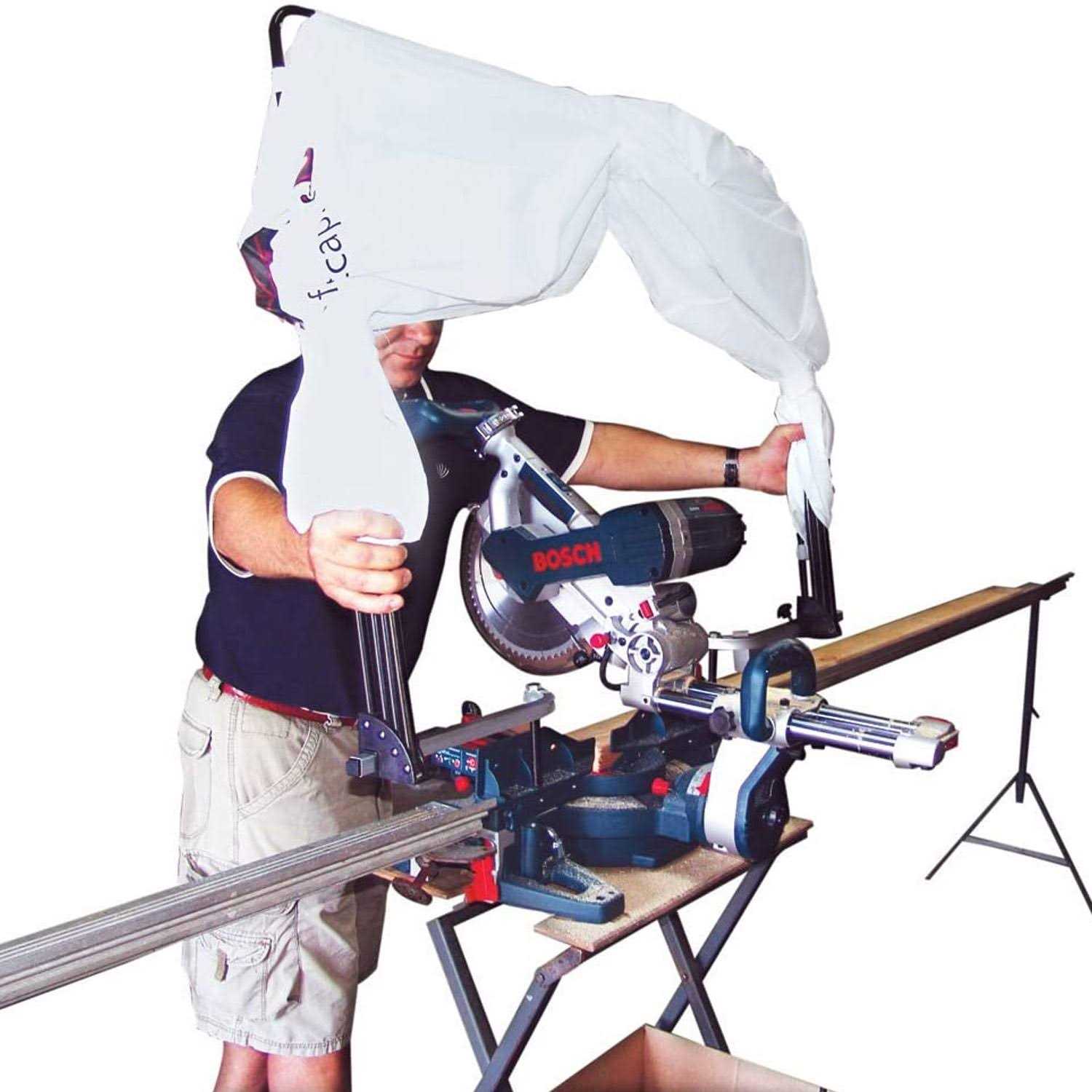 Control messes created on the jobsite by sawdust and other debris with this heavy-duty water-resistant nylon hood. Hood creates a shell around chop saws, miter saws, lathes and wet saws to contain debris to a small area and prevent it from littering your entire work area. Also functions as a protective cover for equipment.
