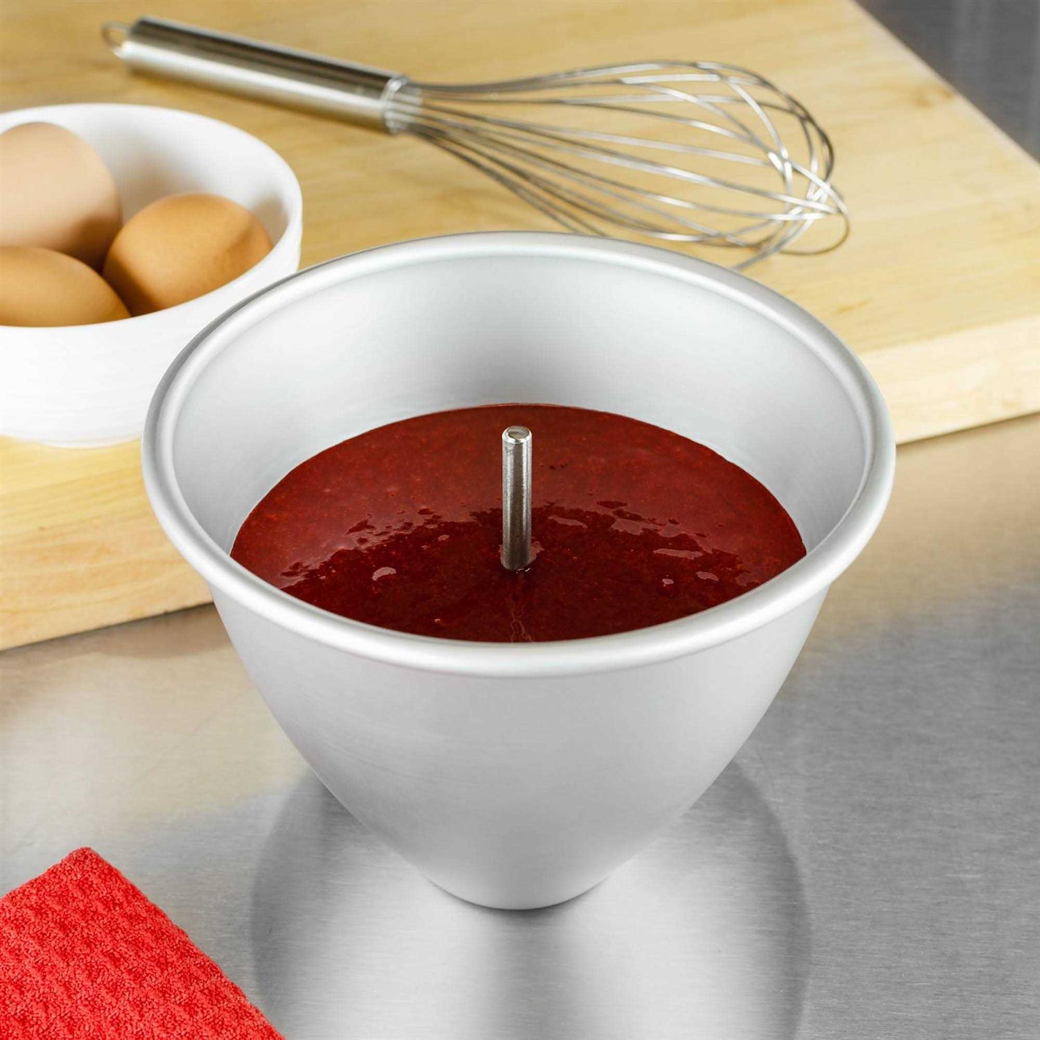 The ultimate time saver! The secret of baking great cakes using larger and deeper pans is allowing the heat get through at the center of the batter using a heating rod or a heating core. And, a simple temperature adjustment to be made. Stop gooey centers with a heating rod. For more than 40 years, Fat Daddio’s has been known for manufacturing anodized aluminum bakeware products such as professional cake pans and baking tools; and which had become the standard for commercial bakeries, professional bakers and decorators; and pastry chefs worldwide.