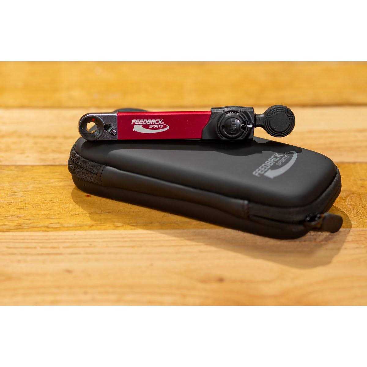 The Feedback Sports Range combines a precise torque wrench and a 2-way ratchet in a single tool. This innovative, ultra-compact tool allows for easy and precise assembly, adjustment and disassembly of components. Thanks to its anodized aluminum body in the typical Feedback Sport red, it is lightweight and stable and can be used like any 2-way ratchet. To select a specific torque function, simply press the torque button on the end of the wrench and operate the Nm scale until the desired torque between 2 and 10 Nm is reached on the clearly marked indicator. The set includes 14 commonly used hexagon socket, hexagon round and Phillips bits, including 2 longer bits for special requirements. Manufactured from high quality S2 steel, the bits are made to last. They are housed in a slim, protective case. The labeled molded foam inserts provide convenient removal and good organization of the bits. Installation and removal with ratchet/fine torque adjustment. All-in-one tool, fits most bikes with a variety of different torque values. Ability to recalibrate after each use to ensure accuracy. Compact, portable, lightweight and innovative. Sophisticated technology and typical Feedback Sports look.