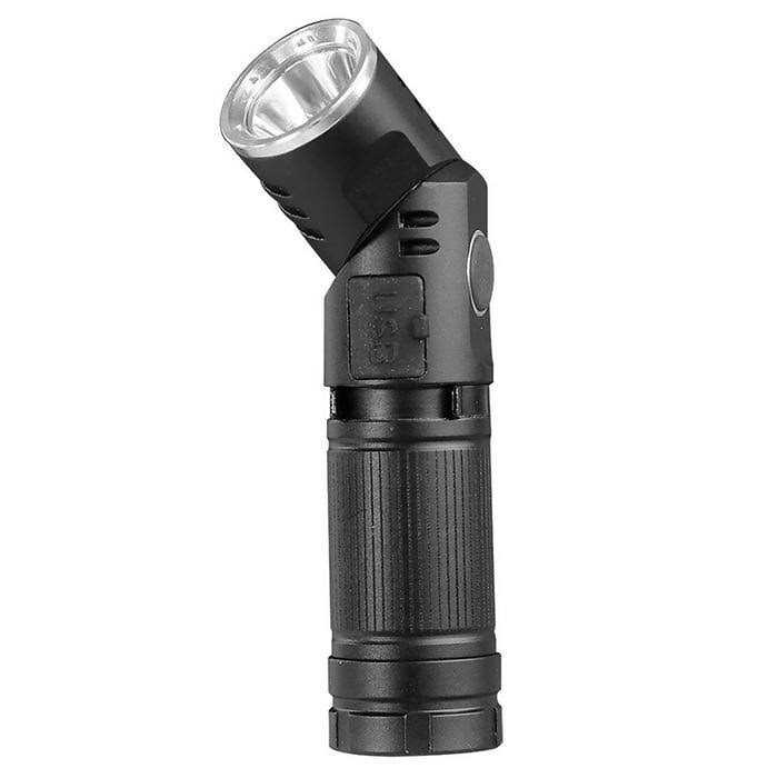 This compact and lightweight flashlight produces up to 500 lumens of light. Operating on a rechargeable battery, it can provide up to 500 lumens of light at the high setting and last up to 4 hours on a single charge on low. A 90° pivoting head allows greater flexibility in focusing light. Constructed from durable aircraft grade aluminum alloy and treated to resist rust and corrosion, this is a perfect accessory for camping trips, emergency kits and more. Each flashlight comes with a USB charging cable and an attached clip. MODEL # – FL500/MINI. DESCRIPTION – A black all weather 500 lumen rechargeable adjustable beam flashlight. RECOMMENDED USES – A powerful dependable weather resistant flashlight for emergency or non-emergency use. COLOR – Black. RUN TIME – 1H- 2.5H. FEATURES – Weather resistant, Impact resistant, Focusable Beam, Up to 500 Lumens, Pivot Head, Strobe setting, Includes Clip and Magnetic Base. UPC – 017801723649. DIMENSIONS – 3.63 x 0.88 x 0.88.