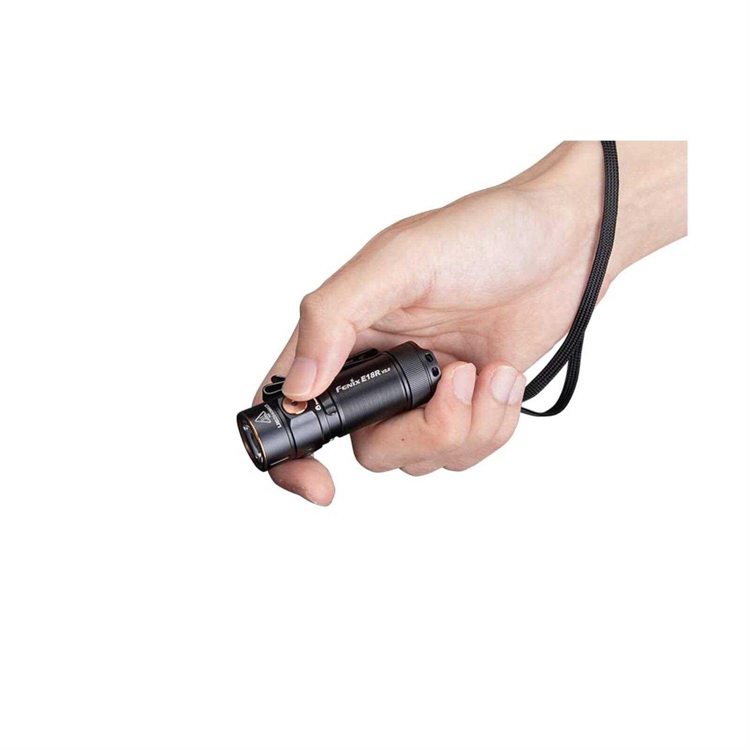 Bulbs: LED Power Source: lithium battery Batteries Included: 16340 li-ion battery Modes: 6 Lumens: 1200 The Fenix E18R v2.0 rechargeable flashlight delivers a 1200 lumen beam with distances up to 159 yards. USB-C RECHARGEABLE. Upgraded to fast and reliable USB-C charging the E18R v2.0 is better than ever. ULTRA COMPACT & DURABLE. The new ARB-L16-700P can power the E18R v2. 1200 lumen max ultra compact rechargeable flashlight. battery included. IP68 Rated Waterproofing: Fully submersible to 6 feet for up to 30 minutes. Up to 200 hours of light on a single charge. Bundle includes a EdisonBright brand holster.