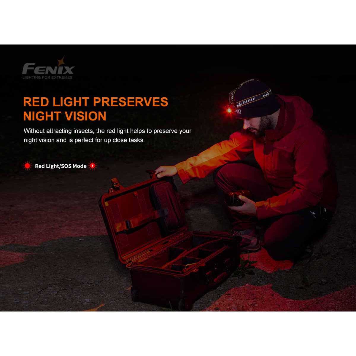 BRIGHT MULTIFUNCTIONAL HEADLAMP – The Fenix HM60R emits up to 1200 lumens with an auxiliary red light, ideal for outdoor activities such as jogging, hiking, camping, running. USB-C RECHARGEABLE- Rechargeable via built-in USB-C port, the HM60R is capable of running up to 54 hours on the lowest mode. TRIPLE LIGHT SOURCE – Primary spot light for beam penetration, secondary flood light for wide coverage, and auxiliary red light for emergencies. COMFORTABLE AND DURABLE – Comfortable to wear for hours with its highly reflective and breathable headband, Built with aluminum alloy and rated at IP68 waterproof, this headlamp can withstand any harsh environment. HM60R Headlamp with ARB-L18 pre-installed, USB-C Charging Cable, Lumentac Organizer The Fenix HM60R headlamp is small, lightweight yet very bright, designed specifically for outdoor activities such as walking, jogging, running, or backpacking. It emits a 1200 lumen max and reaches 126 feet. A sensor automatically senses your running speed to deliver optimal brightness. When it’s time to rest, switch to the red light to preserve the night vision or flashing red to raise the visibility to other runners and vehicles. With the choice of a wide angle floodlight, piercing spot light, and auxiliary red light, the HM60R covers all lighting needs.