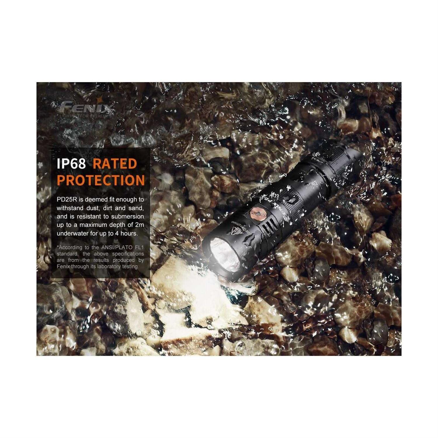 The Fenix PD25R is the ultimate EDC flashlight with plenty of power and functionality. This compact flashlight is capable of an 800 lumen turbo that can reach up to 273 yards of beam distance. At only 3.62 inches in length, less than an inch in diameter, and only 2.7 ounces, the PD25R can be easily carried in your pocket with zero burden. You can also clip it to a sleeve, bill of a cap, or backpack with its double sided pocket clip. Take it on your adventures as an emergency backup light or carry it everyday for daily uses. Controls are simple and intuitive as well with a tail switch for on and off, and a side switch for mode controls. A simple and effective package for any EDC kit, emergency kit, or outdoor adventure.PROP 65 WARNING: This product can expose you to some kind of chemical, which is known to the State of California to cause cancer.