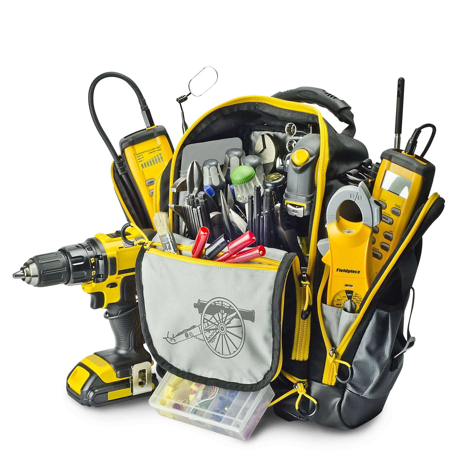 The BG44 Single Strap Bag System is specifically designed to fit the needs of HVACR professionals. Its a smaller and easier bag crafted for the initial call to test and assess a system. Padded outside pockets keep instruments protected and away from hand tools. A strong and sturdy base keeps the bag upright and not directly on the ground. The interior tool rack houses hand tools for easy access and quick visibility so missing tools dont get left behind. Special accessories include a magnetic tray, water bottle/ wasp spray strap, electrical tape strap, small plastic tray storage in bottom, and drill holster. All in a compact bag that fits snuggly to the body to fit in tight places like crawl spaces and ladder cages.