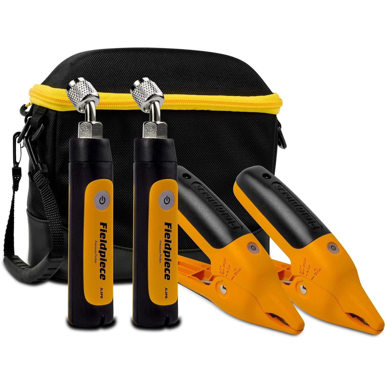 The Fieldpiece JL3KR4 Job Link Probes Charge Kit brings HVAC diagnostics into the 21st century. You can analyze your AC system much faster with the set of intelligent probes from the group. Each search has a wireless range of 1000 feet (305 meters) and can be coupled with the Job Link app on your mobile device to view each measurement live. The Fieldpiece JL3KR4 Job Link HVAC Kit is designed to give HVAC technicians more freedom and improve productivity while on the job site. The JL3PR Job Link Pressure Probes are designed to fit tight spaces and feature an angled 1/4″ fitting. At the bottom of each unit is a switch that toggles between Blue (Low Side) and Red (High Side). This is an excellent feature because it communicates with the Job Link app and shows up when viewing the measurements. The JL3PC Job Link Premium Pipe Clamp Probes take fast and accurate temperature measurements surpass California’s Title 24 requirements. These clamps can be used on pipes ranging from 1/4″ up to 1-3/8″ with this information being etched on the side of the clamp to reference quickly in the field. The pipe clamps also utilize the patent-pending Rapid Rail sensor technology that requires electrical continuity to complete the circuit, which improves accuracy by reducing ambient conditions’ effect on the measurements. This also allows the temperature readings to stabilize in under 5 seconds. The new Fieldpiece Job Link smart probes are an excellent addition to any HVAC technician’s toolbag by giving a clear live view of what the system is doing quickly and effectively. Do more with Job Link probes today!