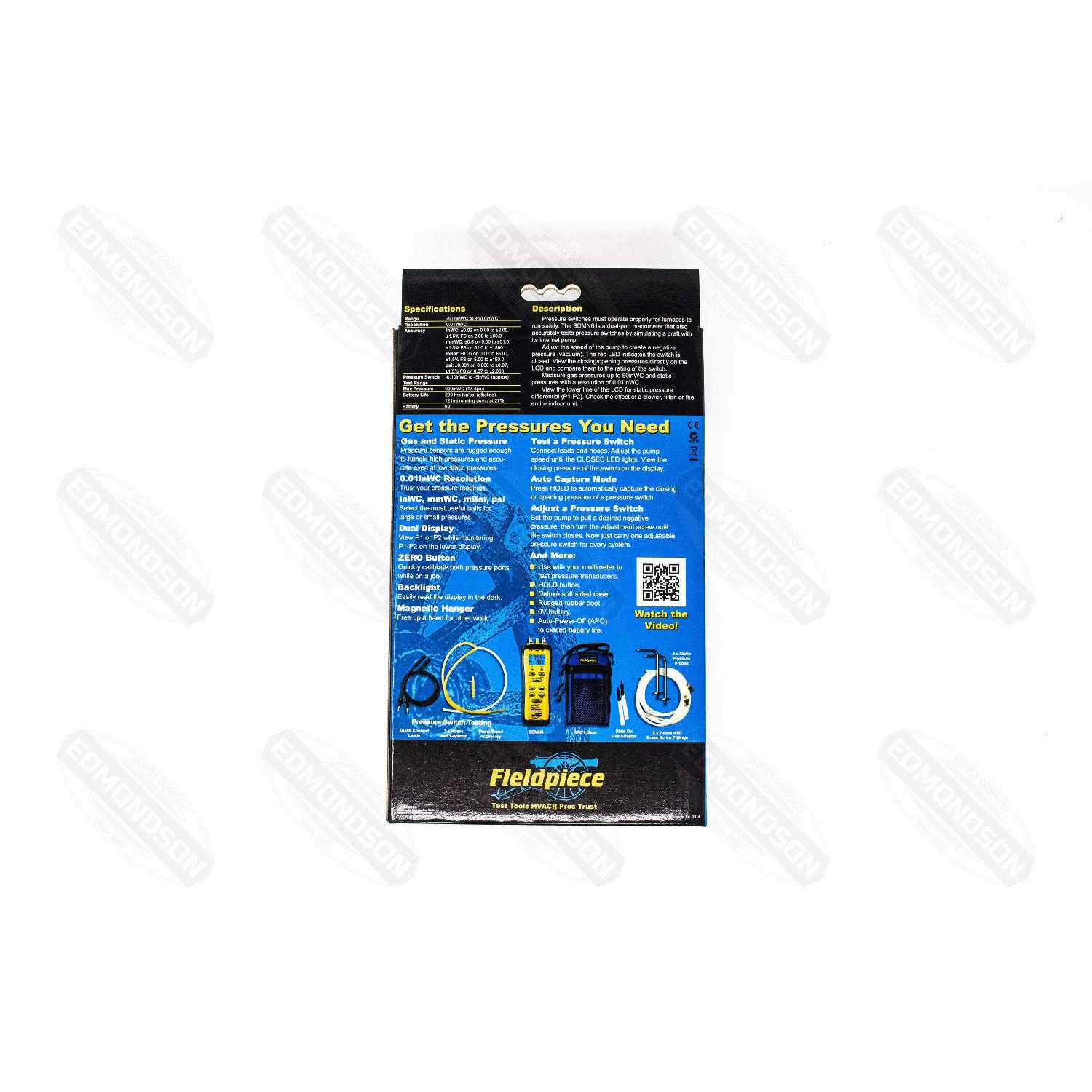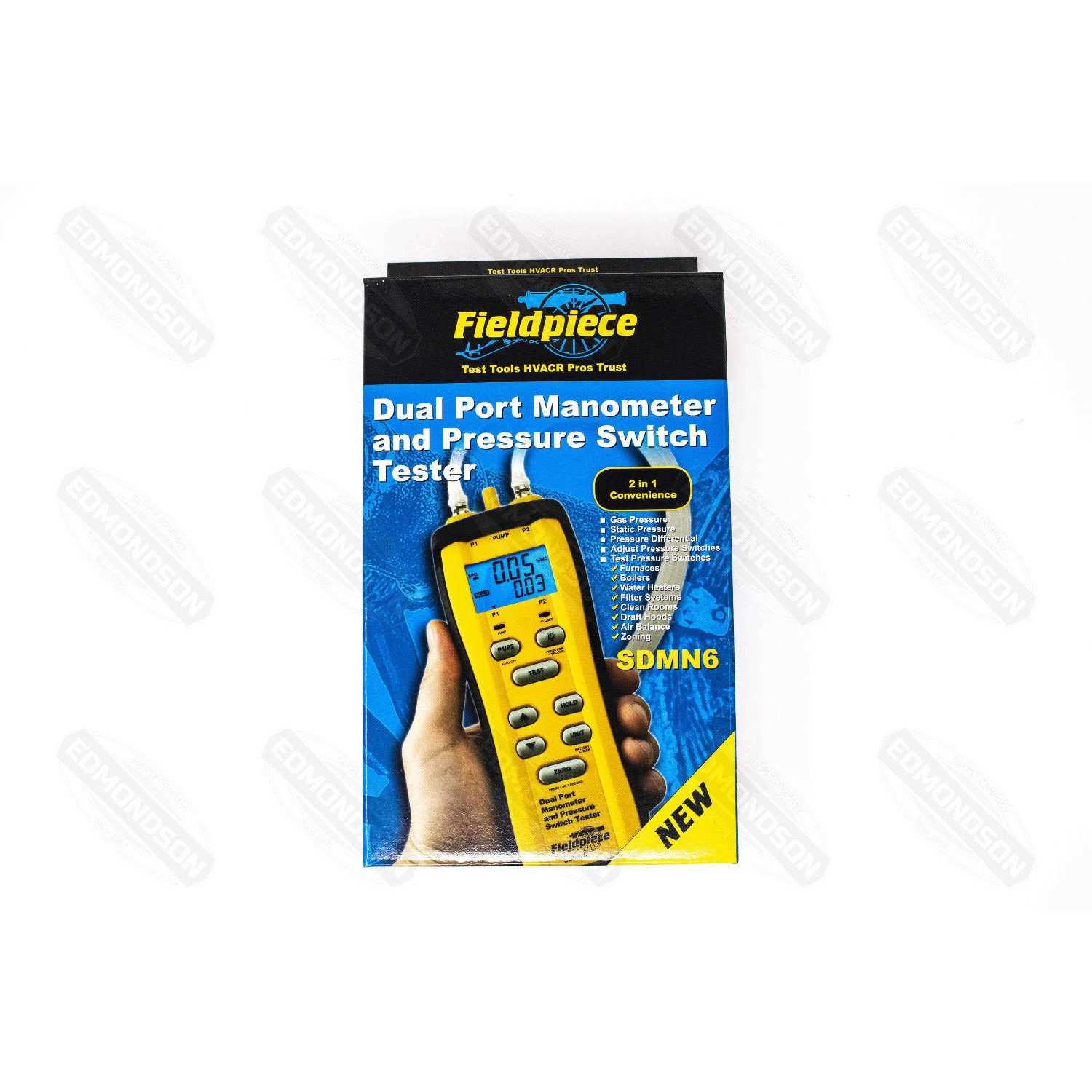 This Fieldpiece SDMN6 Dual Pressure, Tester is a genuine Fieldpiece pressure tester perfect for HVACR professionals. This product is the first tool capable of accurately testing pressure switches, by using its artificial draft which is caused by internal pump. This Fieldpiece SDMN6 is also able to get the ranges and measure the gas pressures and resolution needed to measure static pressures. This tool includes the meter itself and three tubes. This Fieldpiece SDMN6 Dual Pressure, Tester comes with the outstanding protection of the Limited Fieldpiece Warranty. Fieldpiece is a company that is a company thats been around for since 1990. They have made it their goal and mission to improve the tools that HVACRs use, to make their jobs easier and our homes more efficient.
