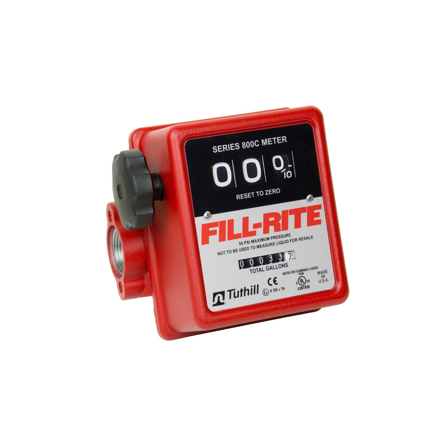 The 800 series nutating disc flow meters by FILL-RITE are designed to be used to measure diesel, gasoline, kerosene, B20 and E15. Rugged construction, easy to read numbers, and the flexibility of horizontal or vertical installations are just 3 features of these superior meters. Plus, all can be field calibrated for improved accuracy. The 807C1 model is a 3 digit gallon mechanical meter with no additional accessories.