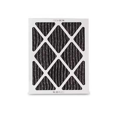 High-performance carbon filter outperforms all 1″ odor reduction filters in the market on odor removal, particle capture, and airflow. Most effective at removing household odors created from cooking, pets, cleaning chemicals, kids, etc., and removes odors from the air passing through the filter. Electrostatically charged media also removes allergens such as pet dander, household dust, bacteria, pollen, mold spores, and dust mite debris. 3 month life on both particle and odor removal. Gray label.