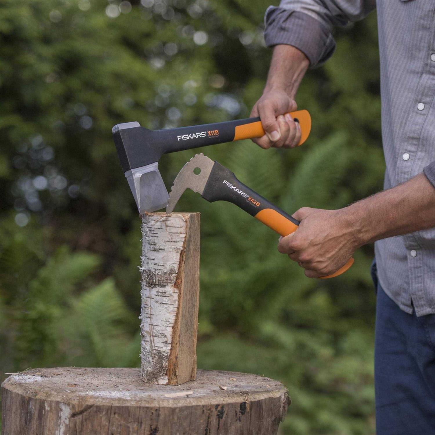 Perfect as a secondary axe for quick jobs, the X11 is designed for easy one-handed use when splitting small logs. Like every X-Series Hatchet or Axe, the X11 combines perfected weight distribution, advanced blade geometry, an ultra-sharp edge and virtually unbreakable design to maximize your performance. This combination of features allows the blade to disperse wood more effectively, offering more one-strike splits with each swing. Since you can split wood more easily with the X11, each job requires less time, less effort and less hand strain. Unlike traditional axes that can be heavy, quick to dull and easy to break, X-Series axes combine perfected weight distribution, advanced blade geometry, an ultra-sharp edge and virtually unbreakable design to maximize your performance. Proudly made in Finland, the axes are designed to be simple, functional and effective, helping you get more work done in less time. This design earned the X-Series axes the international red dot “best of the best” product design award for the garden category in 2010, recognizing outstanding design quality and trendsetters. A wide range of sizes and styles makes it easy to find the X-Series axe perfect for you, whether you’re chopping kindling, chopping logs, splitting logs or felling trees. X-Series axes combine innovative features for chopping axes that chop 3X deeper and splitting axes that offer more one-strike splits. All X-Series axes feature a smart design that distributes the majority of the weight to the axe head while keeping the stronger-than-steel FiberComp handle lightweight. This perfected weight distribution provides an optimal power-to- weight ratio that increases swing speed to multiply power, much like an aluminum baseball bat.