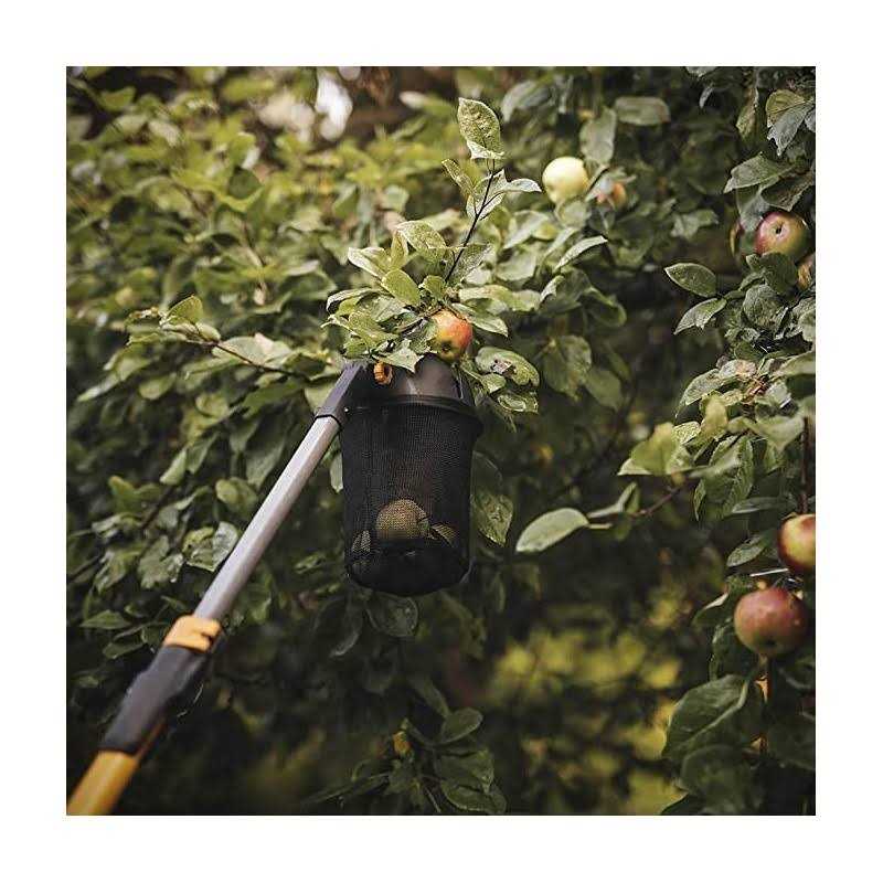 - Fiskars Extendable Fruit Picker Tool harvests fruit from tall trees without bruising or scratching.