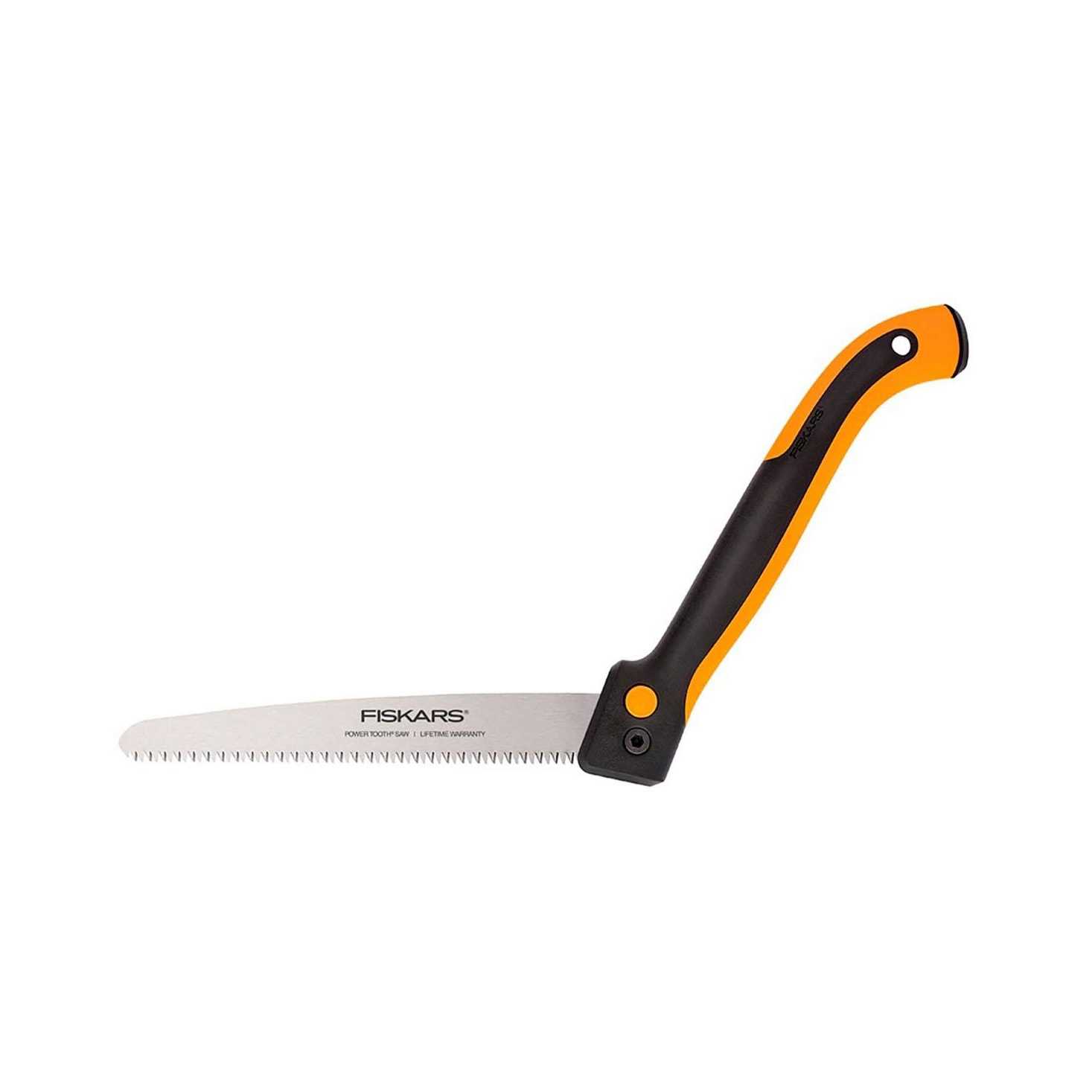 - Fiskars folding saw blade locks in 2-different open positions, optimized for overhand cuts and undercuts
