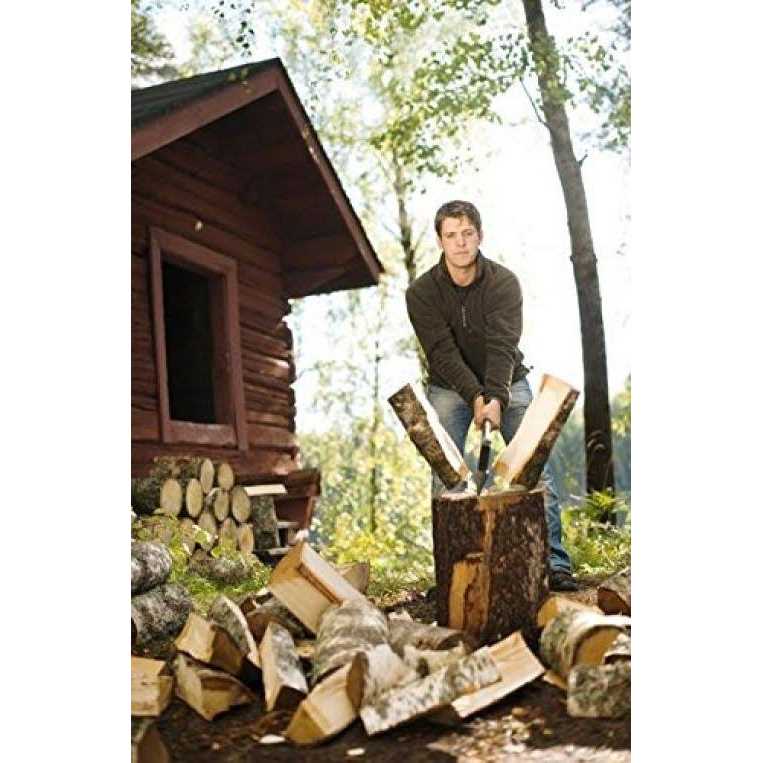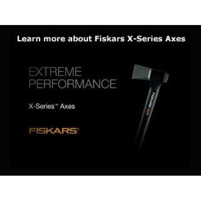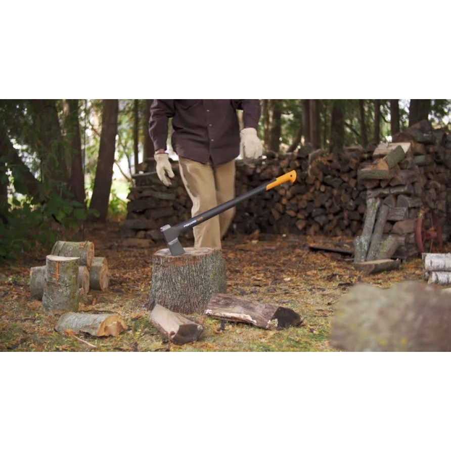 Fiskars X27 Super Splitting Axe (36″). Perfect for taller users, this axe maximizes efficiency for more one-strike splits and includes a heavy-duty sheath. Ideal for taller users splitting medium- to large-sized logs. Designed for maximum efficiency to give you more one-strike splits. Perfected balance and power-to-weight ratio increases swing speed to multiply power, much like an aluminum baseball bat. Advanced bevel convex blade geometry adds power and makes the blade easier to remove from wood. Proprietary blade-grinding technique provides a sharper edge for better contact and cleaner cuts. Hardened forged steel blade stays sharp longer than traditional axes. Inseparable Permahead insert-molded head will not loosen and prevents overstrik.