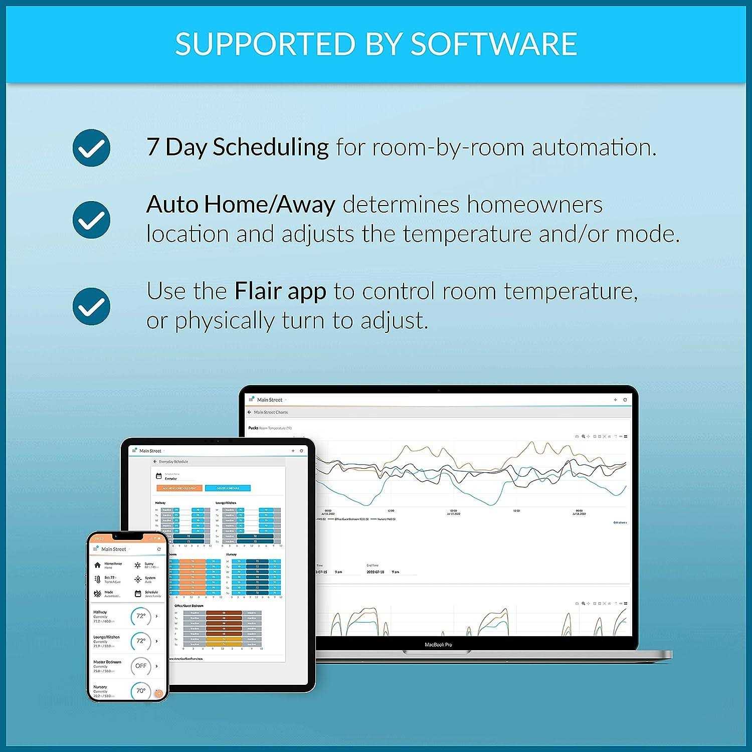 The Flair Puck-it’s like having a smart thermostat in every room of your home! Together they intelligently redirect airflow to the right rooms at the right time. What can you do with the Flair Puck and Smart Vent Eliminate hot and cold spots across your home Balance temperatures between rooms for evenness Set different temperatures for different rooms With the Flair App (available on iOS Android or in your browser) you can set temperatures create seven-day schedules set Home and Away or use our geofencing. Love data The app also keeps track of temperature pressure humidity and ambient light in each room that has a Puck. No smartphone Simply rotate the Puck bezel and you can set the temperature for that room. It’s perfect for guests AirBnBs or rental properties. Flair Pucks and Smart Vents are in thousands of homes. Bring yours home today!