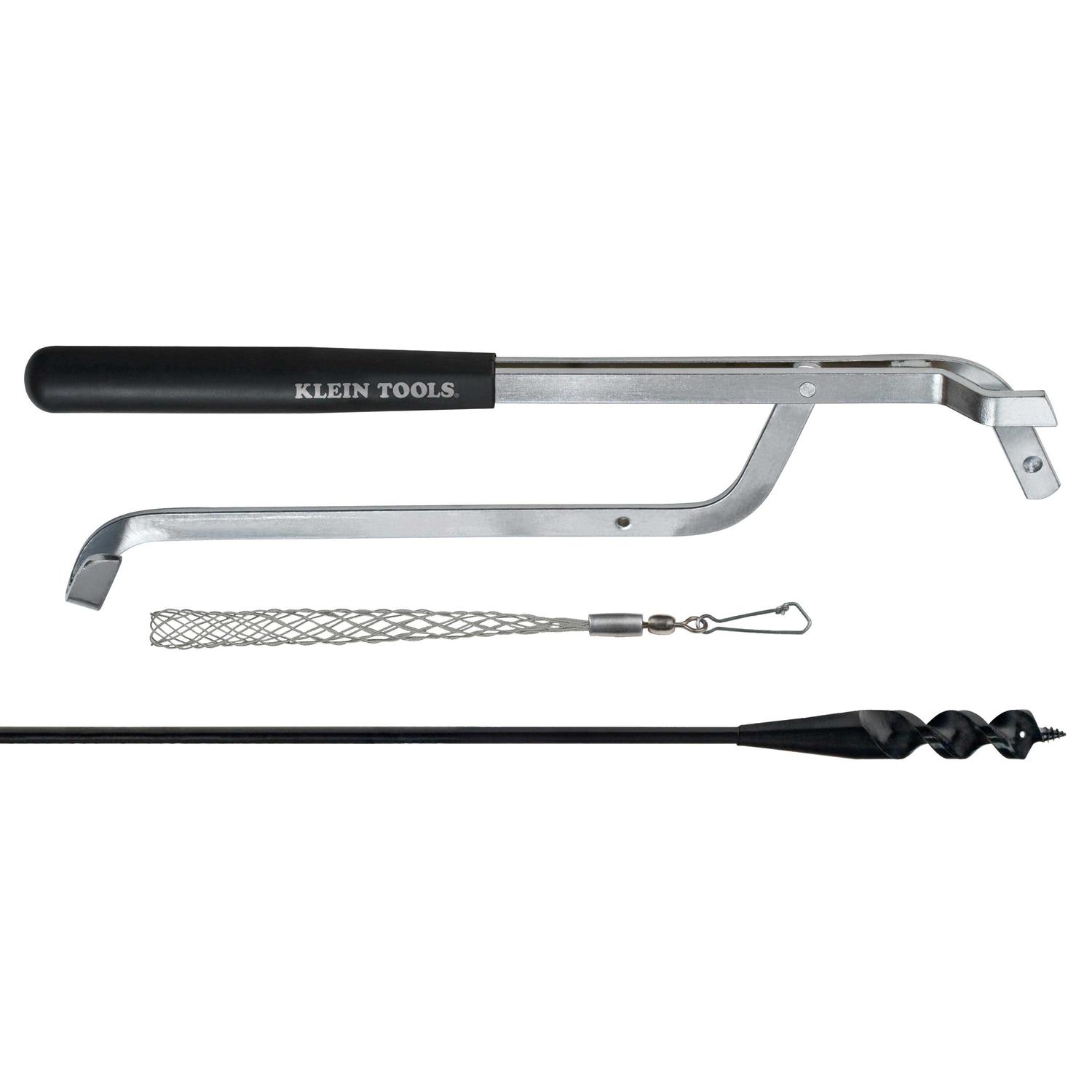 Klein’s Flex Bit kit includes everything you need for drilling and pulling wire and cable in-wall. The flexible drill bit makes 9/16-Inch (14 mm) holes in wood. The folding placement tool helps guide the bit as you drill. The pulling grip attaches to the flexible drill bit after the hole has been made to pull wire and cable through.