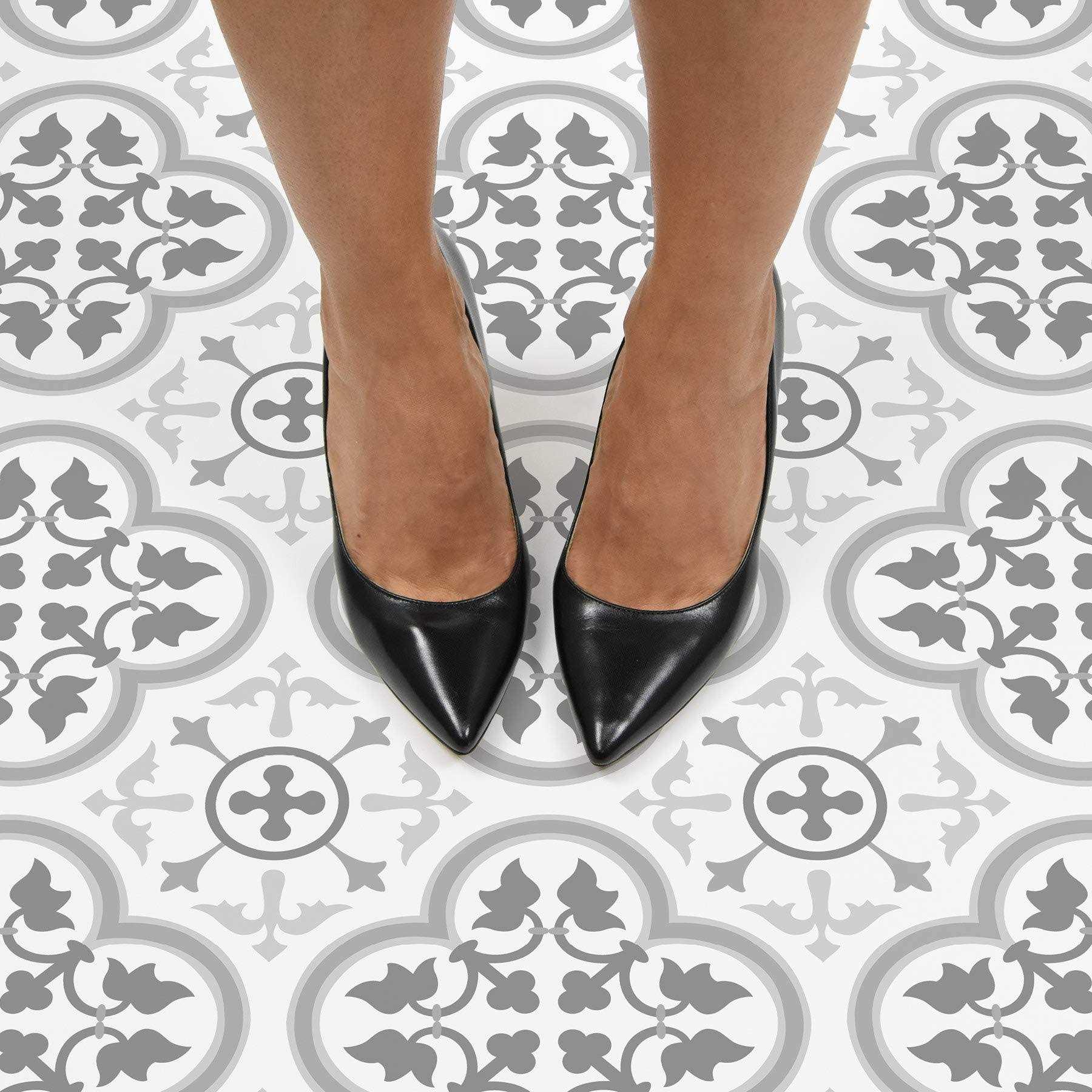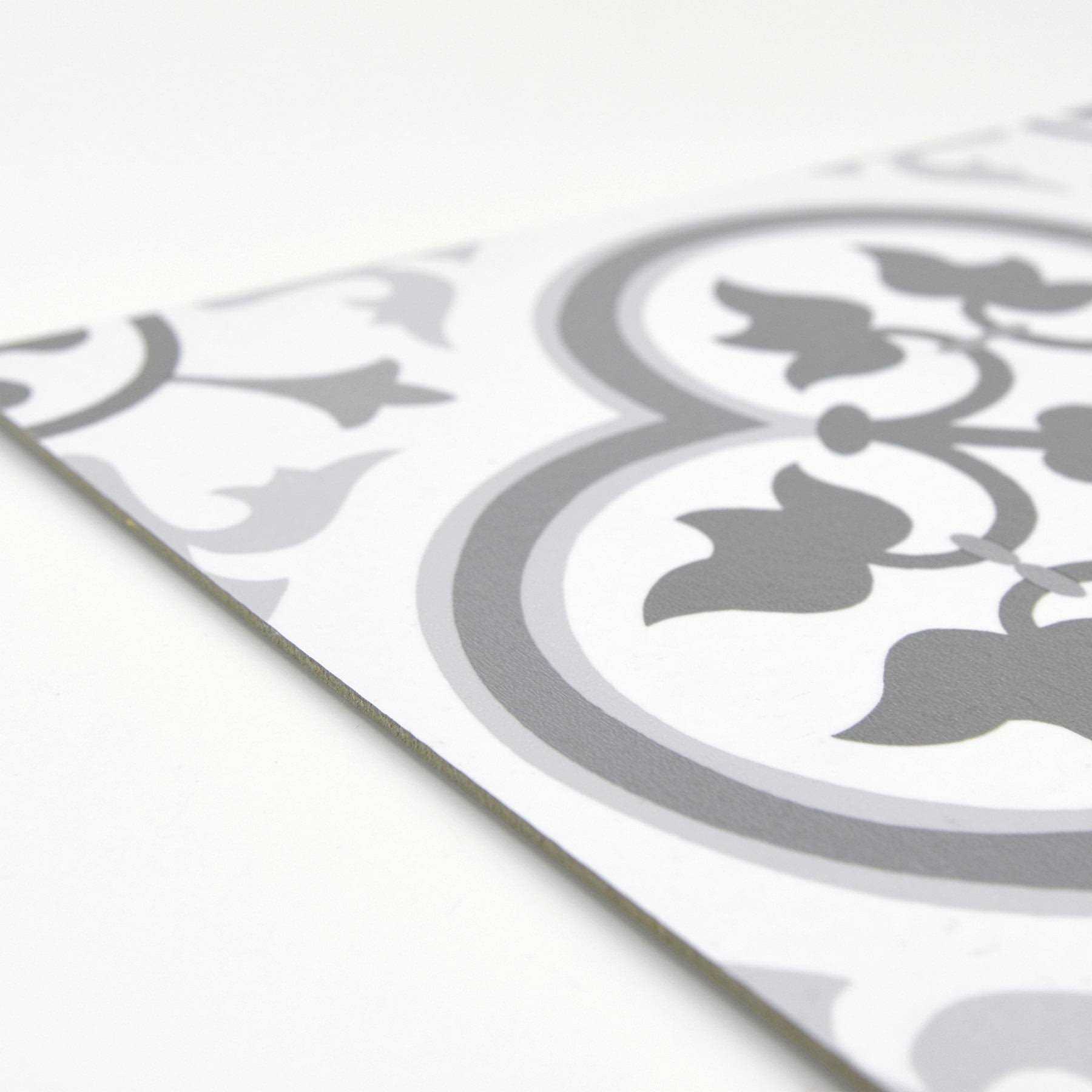 Illuminate your kitchen and bathroom floors with the radiant charm of our Remy Peel & Stick Floor Tiles. These peel and stick tiles are the perfect way to brighten up your space. The grey gothic-style motif elegantly complements the crisp white background, creating a stunning contrast. Each set of Remy Peel & Stick Floor Tiles includes 10 pieces on 10 sheets, measuring 30.48cm x 30.48cm, providing ample coverage for your flooring needs.nExperience the convenience of easy installation with our high-quality peel and stick tiles. Simply peel off the backing and firmly press the tiles onto any clean and flat surface. No need for complicated tools or messy adhesives. The durable construction ensures long-lasting performance, making these tiles a perfect choice for both DIY enthusiasts and professionals. Enhance the visual appeal of your kitchen and bathroom with the effortless beauty of our Remy Peel & Stick Floor Tiles.