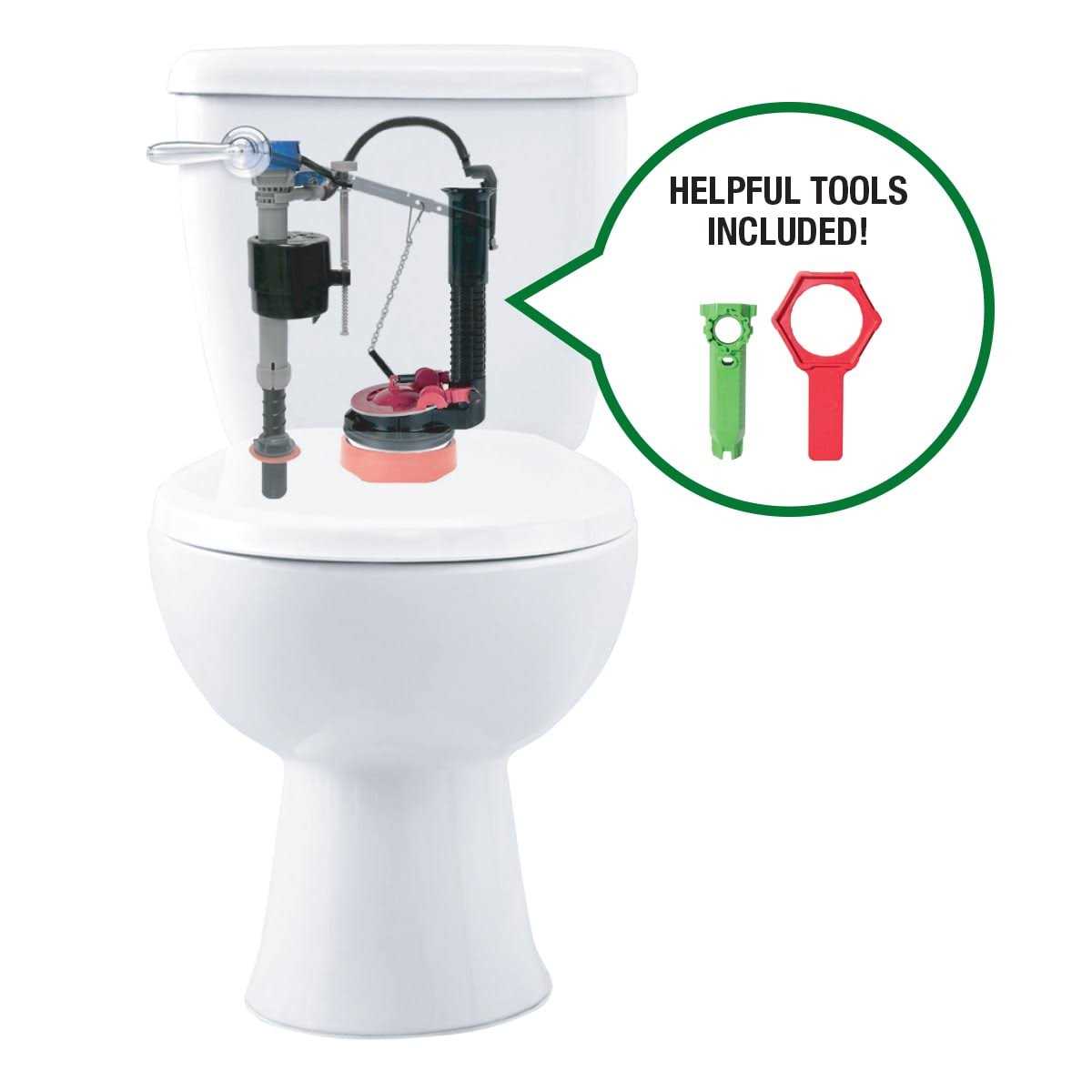 Universal High Performance Everything Toilet Repair Kit offers an all-in-one solution to repair your toilet fast and is made specifically for 3 in. flush valve toilets. This complete toilet repair kit includes everything you need to fix your toilet fast, including install/uninstall tools. The PerforMAX toilet fill valve is a high-performance fill valve with 2X greater refill rates than standard models, Featuring ultra-quiet operation and adjustable bowl and tank water settings to customize your water use per flush. The adjustable 3 in. toilet flush valve changes height with a quick 90-degree turn, no cutting required. Also including the adjustable 3 in. toilet flapper. Built to last with a durable silicone seal and water-saving adjustable dial design. The universal tank-to-bowl toilet gasket is made to fit most any 3 in. flush valve toilet, with a simple two-piece design. Quickly solve running, noisy or leaky toilet problems with one kit made to fit and provide the simplest install possible. Follow the step-by-step instructions and use the toilet install tools on the fill valve, flush valve and tank-to-bowl hardware. Best for use in 1.28 HET toilets.