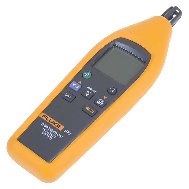 Temperature and humidity are two important factors in maintaining optimal comfort levels and good indoor air quality. Quickly and conveniently take accurate humidity and temperature readings with the Fluke 971. The Fluke 971 is invaluable for facility maintenance and utility technicians, HVAC-service contractors, and specialists who assess indoor air quality (IAQ). Lightweight and easy to hold, the Fluke 971 is the perfect tool for monitoring problem areas. With a rugged holster and twist-open protective sensor cover, the Fluke 971 is built to perform and made to last.