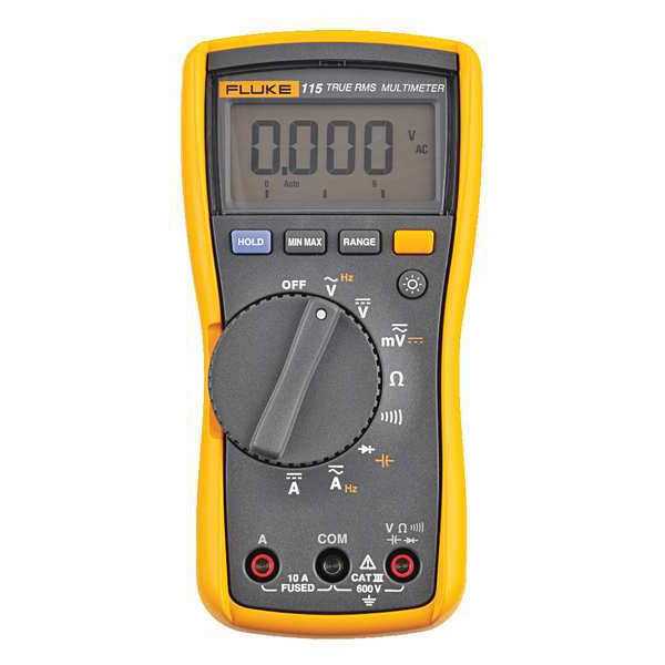 The Fluke 115 is the compact, general purpose troubleshooting tool for field service technicians For general purpose electrical and electronic test requirements, the Fluke 115 True RMS digital multimeter provides the perfect answer. Its simple, one-handed operation and compact design meets the needs of a wide variety of field service technicians. It measures True RMS voltage and current with 6000 count resolution as well as resistance, continuity, frequency and capacitance for quick verifications. Fluke 115 Digital Multimeters are independently tested for safe use in CAT III 600V environments.