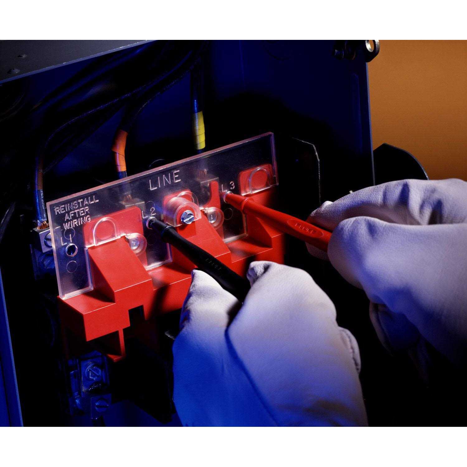 Fluke Slim Reach Test probe in red/black color features hard stainless steel probe tips for testing closely spaced recessed terminals. Probe features flat blade design to fit in blade type electrical sockets. It has 10 Amps current carrying capacity. Test probe has CAT III 1000 Volts and CAT IV 600 Volts rated design for safer operation.