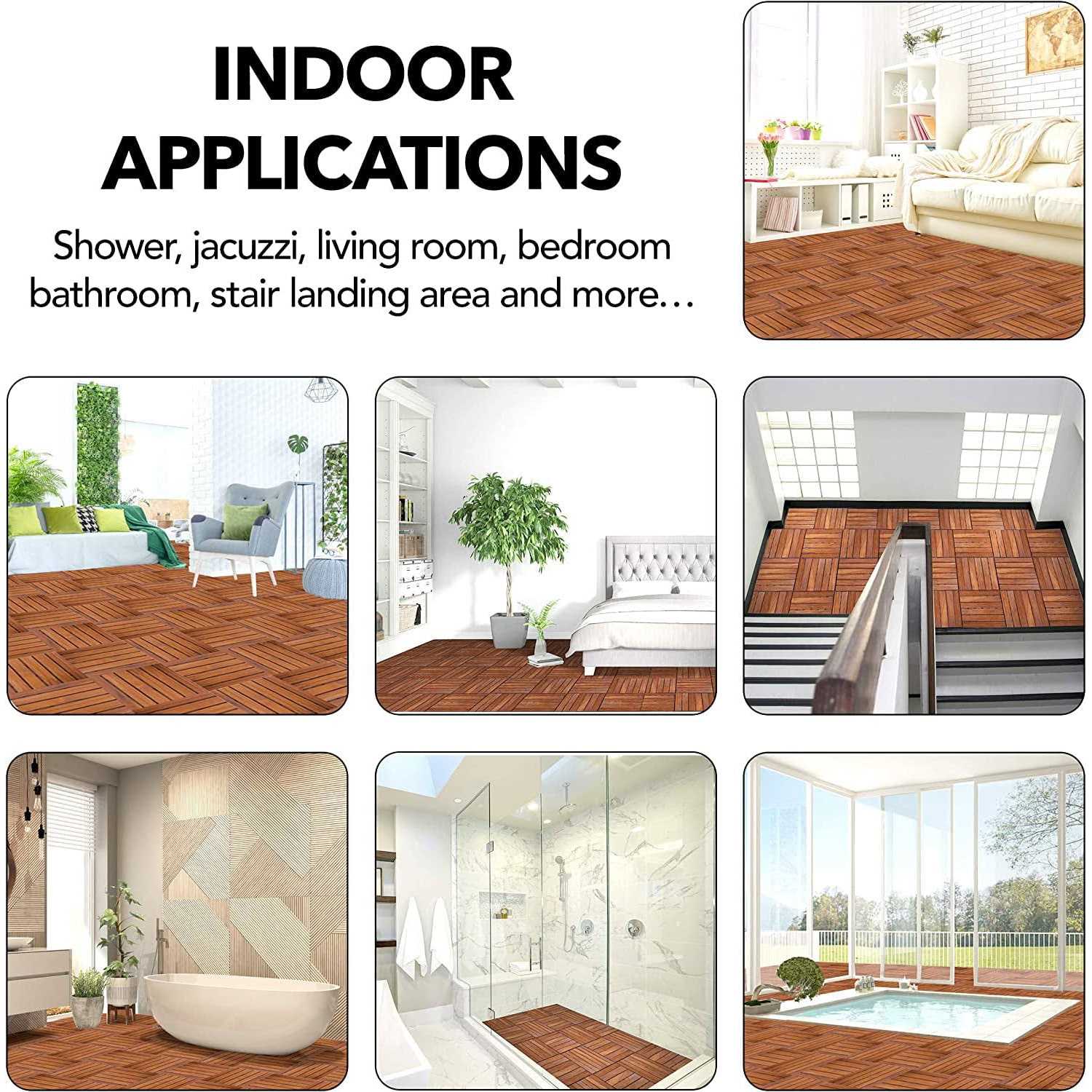 Give your home’s exterior a new look with these acacia wood outdoor flooring from Flybold. Measuring 12 inch x 12 inch, the wood tiles are on an interlocking polypropylene (PPC) grid base with high tensile strength for long-lasting performance. The interlocking deck tiles have a snap lock mechanism for fast and easy installation and removal with no specialized tools. Its snap interlocking system allows you to easily use various tile patterns, including straight lay, herringbone, and double parallel lay. With 100% solid acacia wood, these patio deck tiles are strong and sturdy. The wood tiles have an oil UV protection coating to make them resistant to fading and exposure to the elements. Upgrading the look of your outdoor space with these outdoor patio tiles offers a cost-effective solution to increase the value of your property. Versatile and practical, you can install the acacia patio flooring on your deck, poolside, entryway, or terrace. They also work well for indoor applications such as the living room, stair landing area, and bathroom.