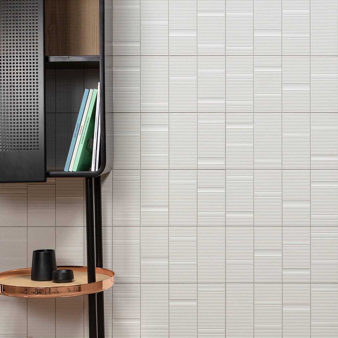 Harmonious and distinct, the Flyer Collection evokes a sense of both excitement and calm. These 8 in. x 16 in. ceramic wall tiles feature a rounded relief pattern that gives the appearance of 4 distinct tiles but are actually just a single tile that can be grouted along with the actual joints. This segmenting effect makes for an easier randomness of pattern without the work, forming a diverse and tactile linear composition with an architectural appeal. A monochromatic color palette reinforces the calming effect of these tiles, as 6 naturally inspired shades provide endless design opportunities, from the minimalist white and grays to the more vivid green and blue hues. A smooth matte finish further enhances the high-end presentation of these Spanish-made ceramic wall tiles. Using a modern pattern and a uniquely elegant color palette, the Flyer tiles can transform any space into a refined sanctuary of design.