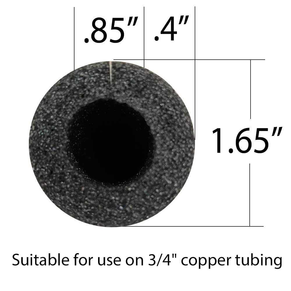 Prevent heat loss or gain to save energy – For pipes that are 1/2 inch diameter. – Use on hot or cold pipes, stop condensation on cold pipes – Fire Retardant, Grey/Black Finish – Easy to install with pre-cut slits that you can run your finger down to open – Stop wasting money on energy costs with Foam King Pipe Insulation. Foam King Pipe Insulation- Insulates hot and cold pipes: pre slit for easy attachement to your pipes. These help to prevent winter freezing and summer sweating. Great for reducing plumbing noise and to reduce heat loss. ID (nominal) 5/8inch; wall thickness 3/8 inch, fits copper pipe size 1/2 inch, fits iron pipe size 3/8 inch, R value = 2.2 Safe for tempeatures from -90F to 180F degrees (-68C to 82C). Flame Spread: Class A ASTM E84; CAN/ULC-S102.2-M88 Smoke Classification: Class A ASTM E84; CAN/ULC-S102.2-M88. Pipe Insulation.