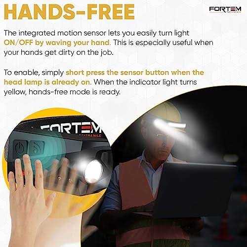 Fortem Headlamp Rechargeable 1-Pack, 230° Wide Beam LED Head Lamp W/MOTION Sensor, 6 Modes for Mechanic, 350 Lumen Hardhat Flashlight, Waterproof
