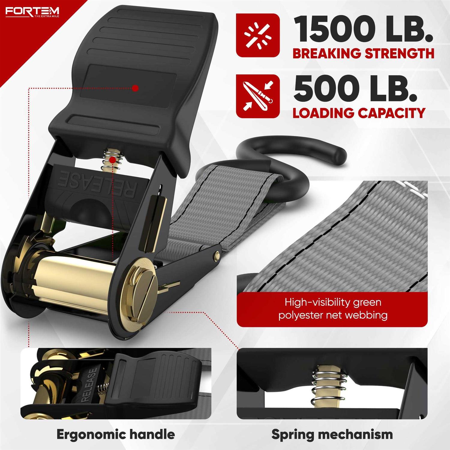 Fortem Ratchet Straps Break Strength 4 15ft Tie Down Strap Set