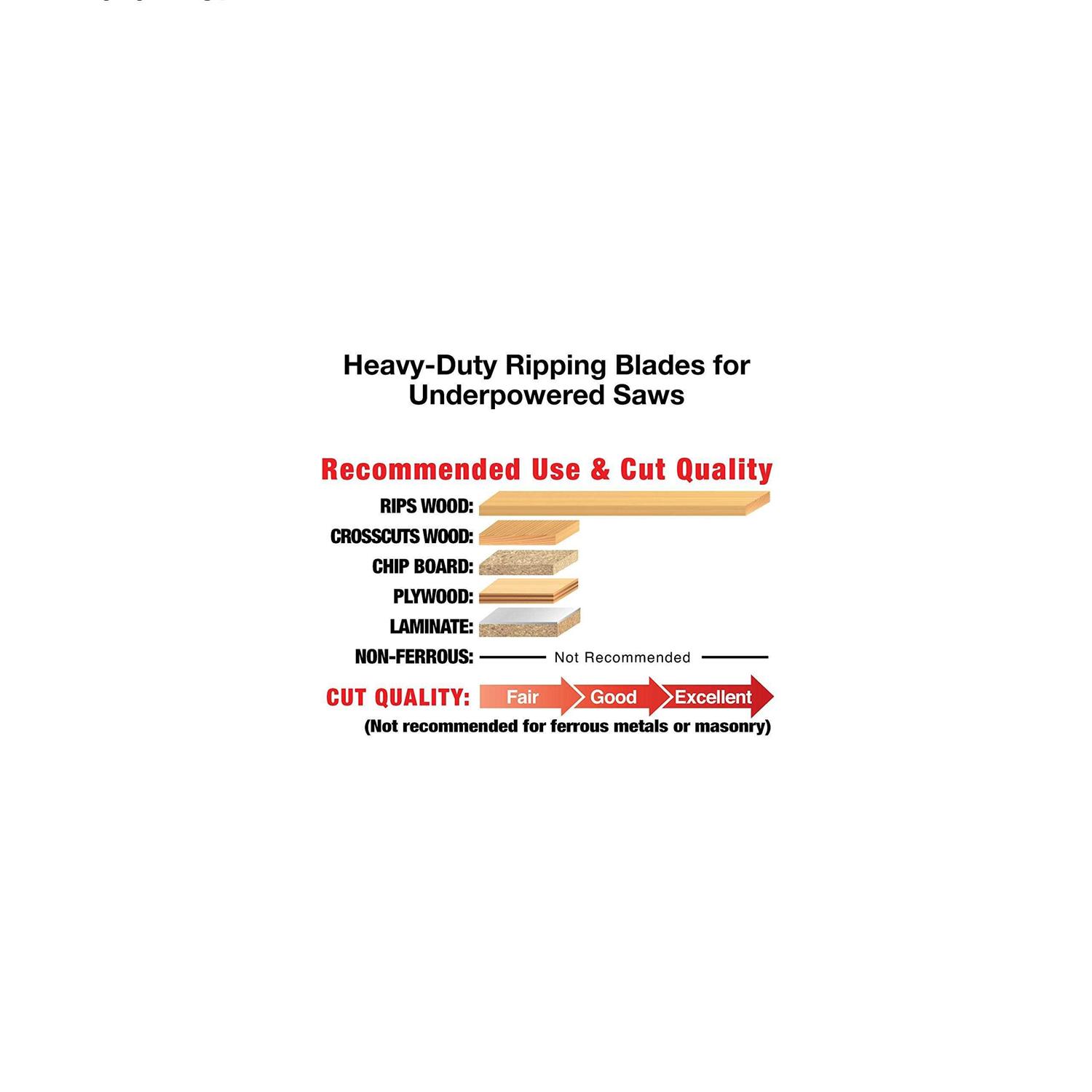 This blade’s specially designed triple chip tooth design produces extremely smooth, true surfaces for gluing and finish work. There is no need for sanding or jointing after the cut. The ideal working range is from 1/8 In. to 1 In. thick. This blade also features laser cut anti-vibration slots, practically eliminating the vibration that resonates in standard blades. With this ultimate ripping blade, there is no need for stabilizers.