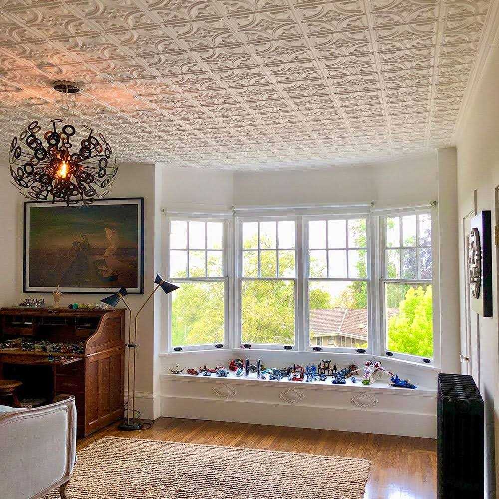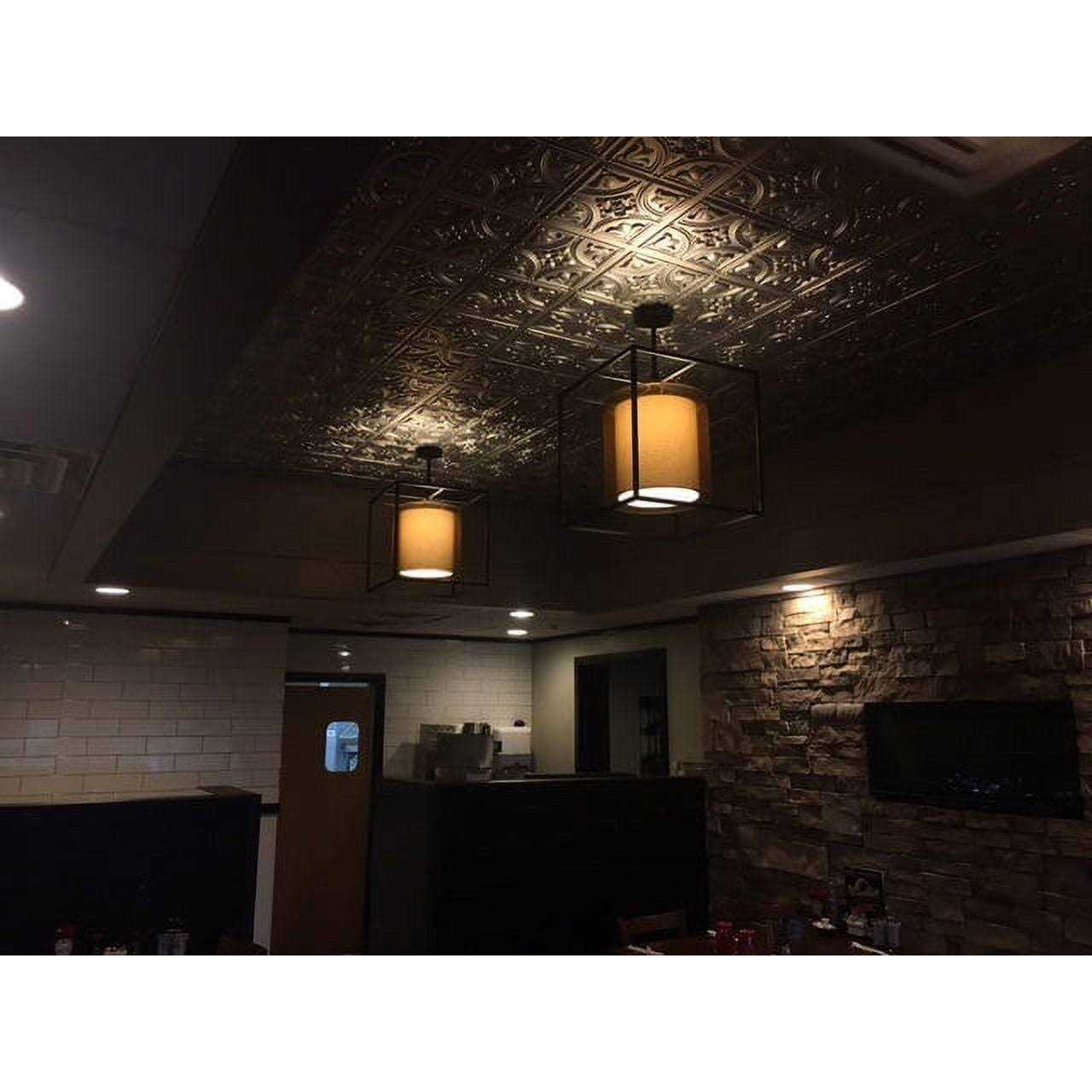 Tiny Tulips Ceiling Tile from Decoraids collection in White Matte finish can be used for commercial or residential applications either glued over most stable surfaces or dropped into a grid system. The panels are made of PVC. The size is 23-3/4 in. x 23-3/4 in. Coverage is 4 sq. ft. per tile. Depth of the design is 3/8 in. Overlapping edges for seamless look.