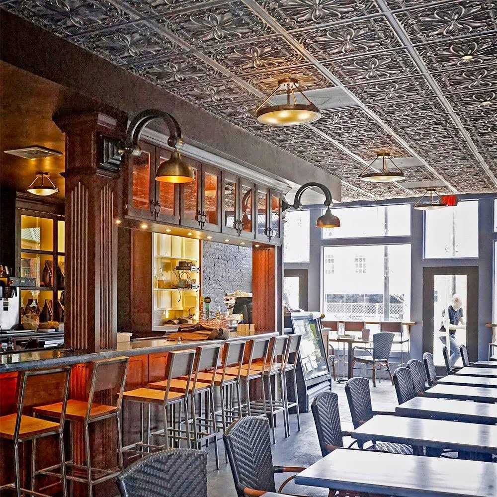 The Milan Faux tin ceiling tile is a part of our From Plain To Beautiful collection. This Faux tin ceiling tile is sized at 2 ft. x 2 ft. and comes in a Graphite Gold finish. It is suitable for both commercial and residential applications and can be installed by either gluing it over stable surfaces or dropping it into a grid system. The panels are constructed from lightweight PVC material, which provides a crisp design and a stunning finish.