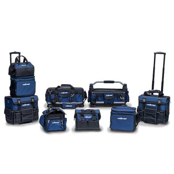 The FRONTIER 15-inch Rolling Tool Bag Tote includes a heavy-duty telescopic handle and rugged rolling wheel set for easy mobility. Incorporates a large central compartment allowing for easy access to all your tools and accessories. Large over-sized storage pockets make it easy to keep your tools in check no matter where your going. Design and crafted with water-resistant 600 denier polyester material and tested to hold up to 85 pounds.
