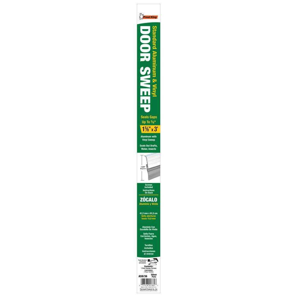 Help reduce your energy bill with the Frost King 1-5/8 in. x 36 in. door bottom. Sealing gaps up to 5/8 in., it prevents heated or cooled air from escaping and outside air from getting in. Prevents dust, water and bugs from entering Seals gap under door up to 5/8 in. to help stop cold drafts Helps keep cooled or heated air from escaping and outside air from getting in, reducing your energy bill Installs easily on the inside of entry doors with provided screws. Slotted holes allow for easy adjustment. Made of vinyl and hard anodized aluminum with a silver finish.