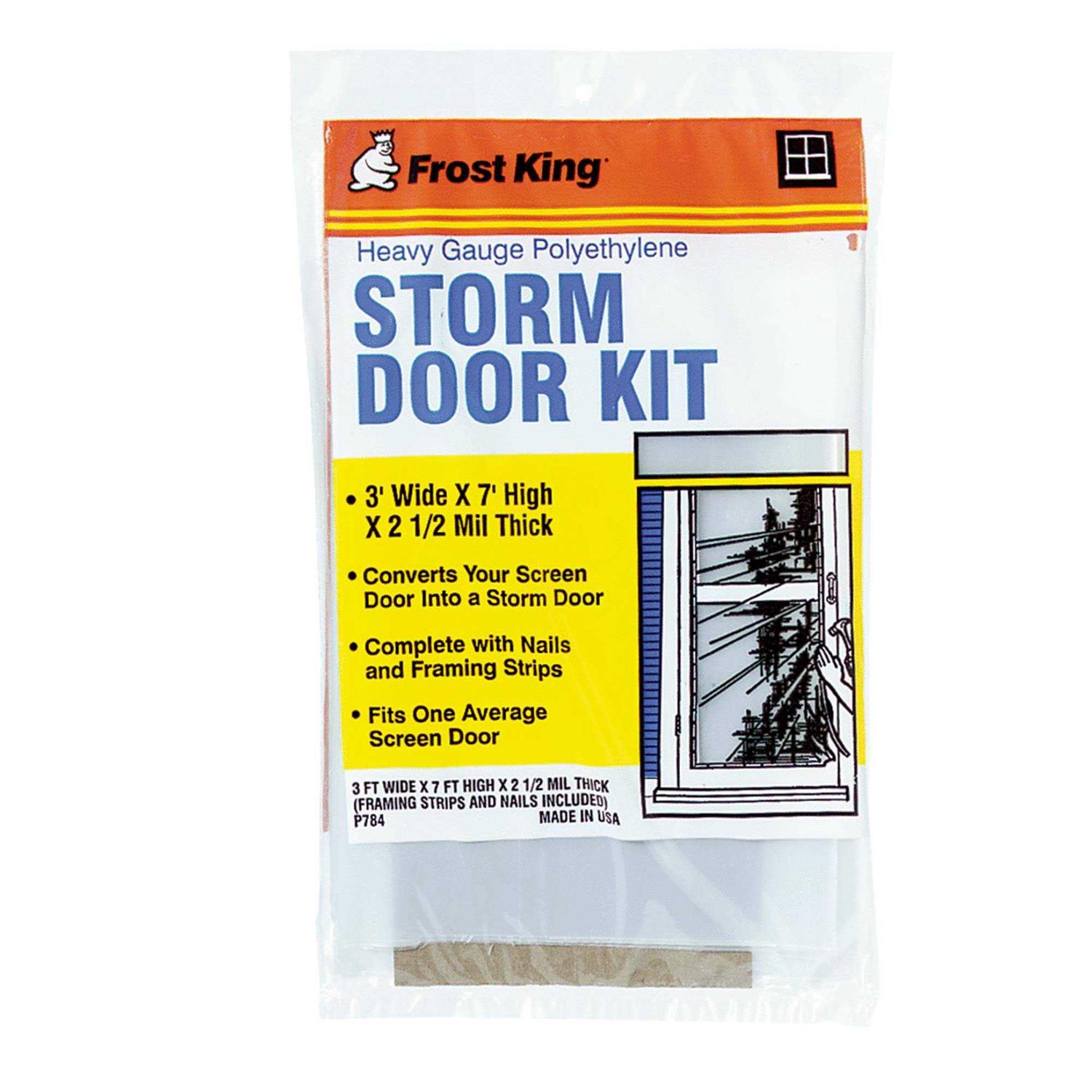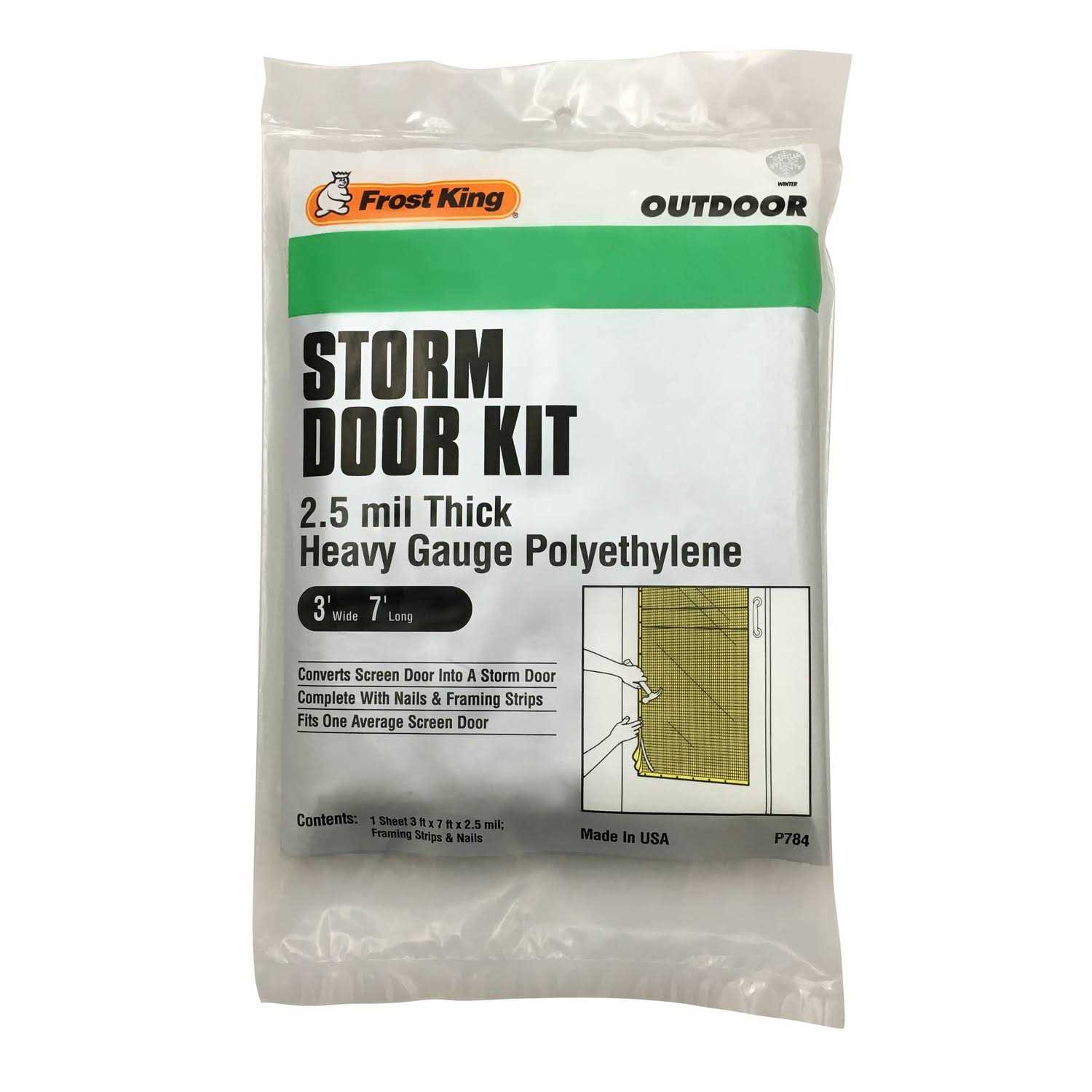 Frost King introduces to you the Outdoor Plastic Storm Door Kit to insulate your patio door this winter. It contains a sheet of thick heavy-gauge polyethylene for use on your outdoor door exterior to keep out window frost and door frost effectively. This door kit also contains fiber door seal strips and nails for easy installation on your door and window. Keep yourself well insulated with the Frost King door kit.